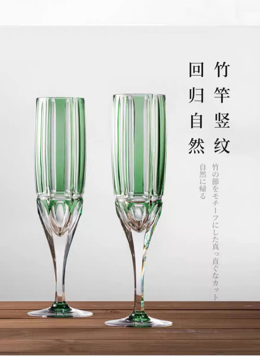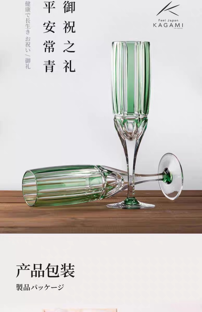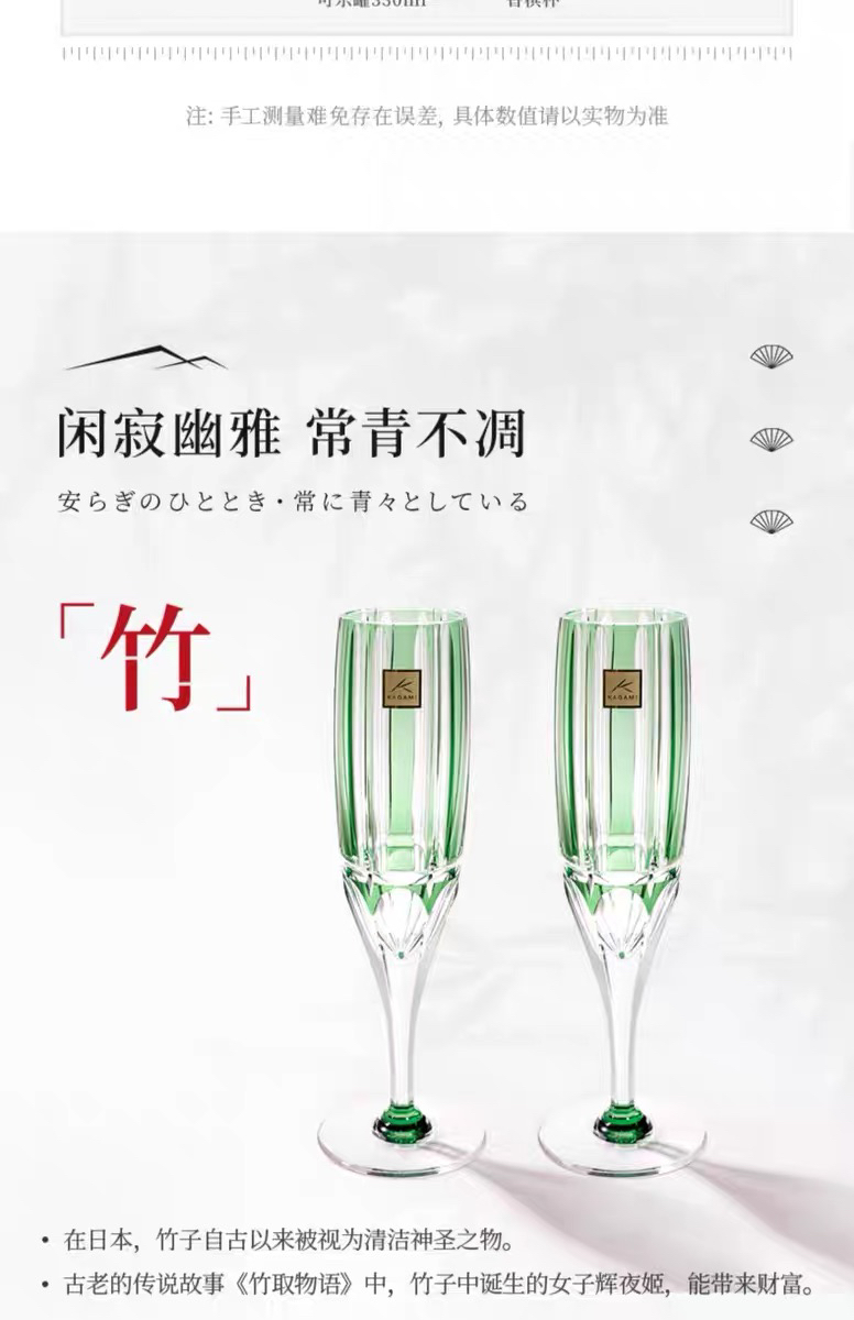 KAGAMI江户切子竹之膳香槟对杯水晶玻璃酒杯高脚杯子
