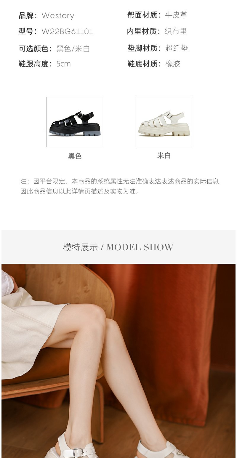westory2022年春夏新款高级感舒适百搭镂空厚底罗马凉鞋女W22BG61101
