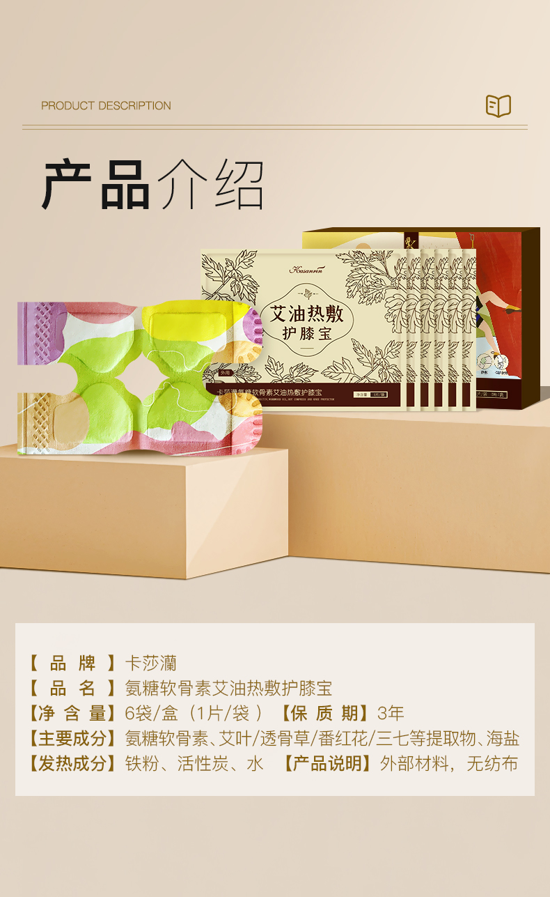 卡莎灡氨糖软骨素艾油热敷护膝宝,温和加热。