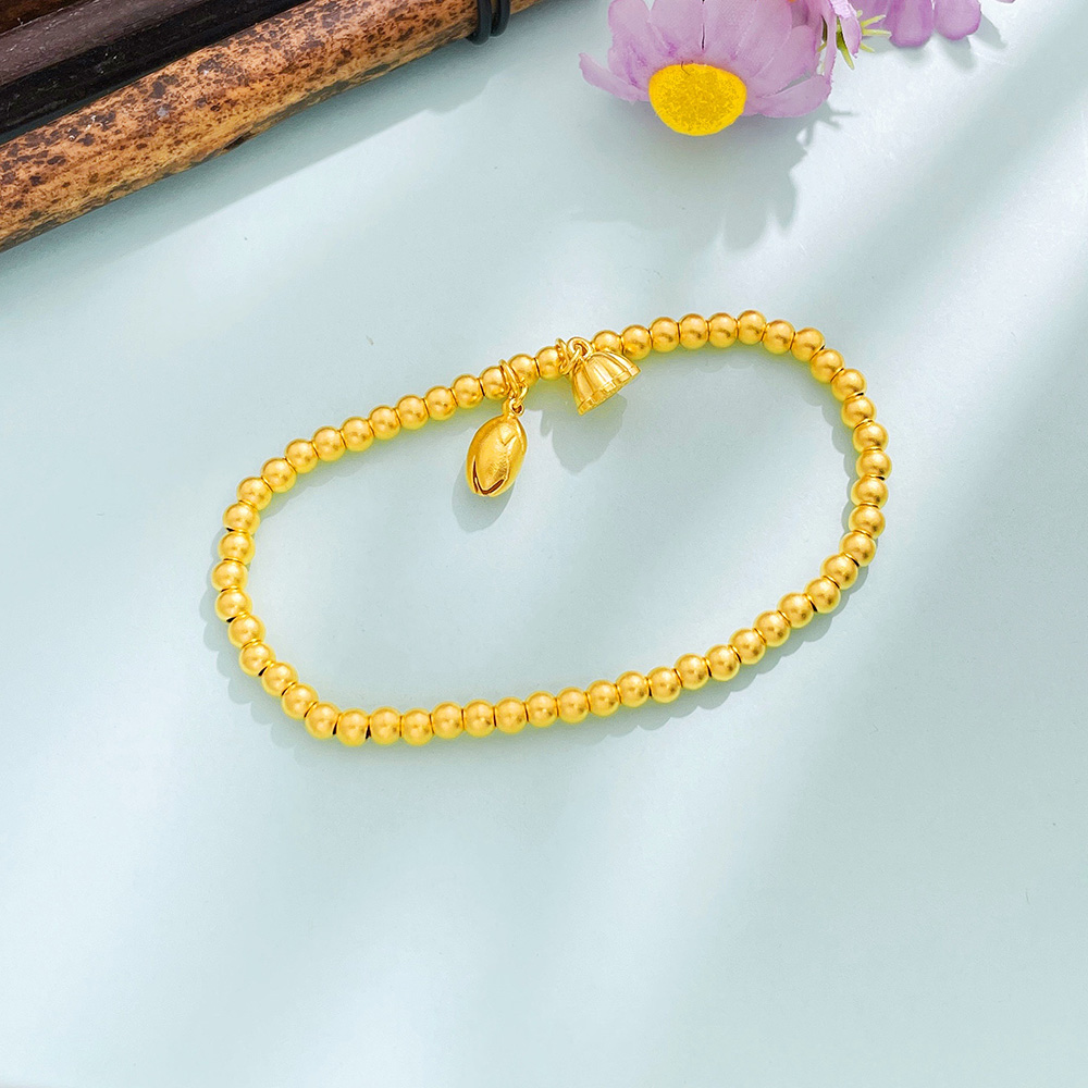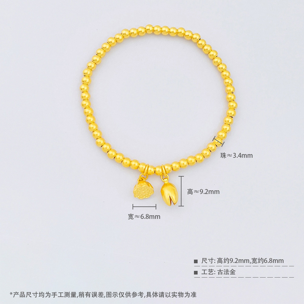 【限时克减150元】足金999 #两世欢 古法两世欢圆珠手链好运莲莲莲花莲蓬吊饰转运金珠弹力绳手串(珠约3.2-3.6mm)(AUQGFSC00031-2)