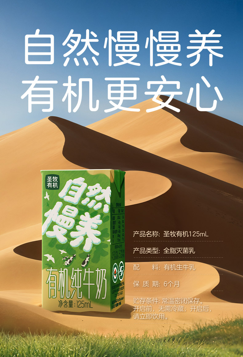 自然慢养 圣牧沙漠有机Mini装 有机纯牛奶 125ml 农残激素抗生素均未检出