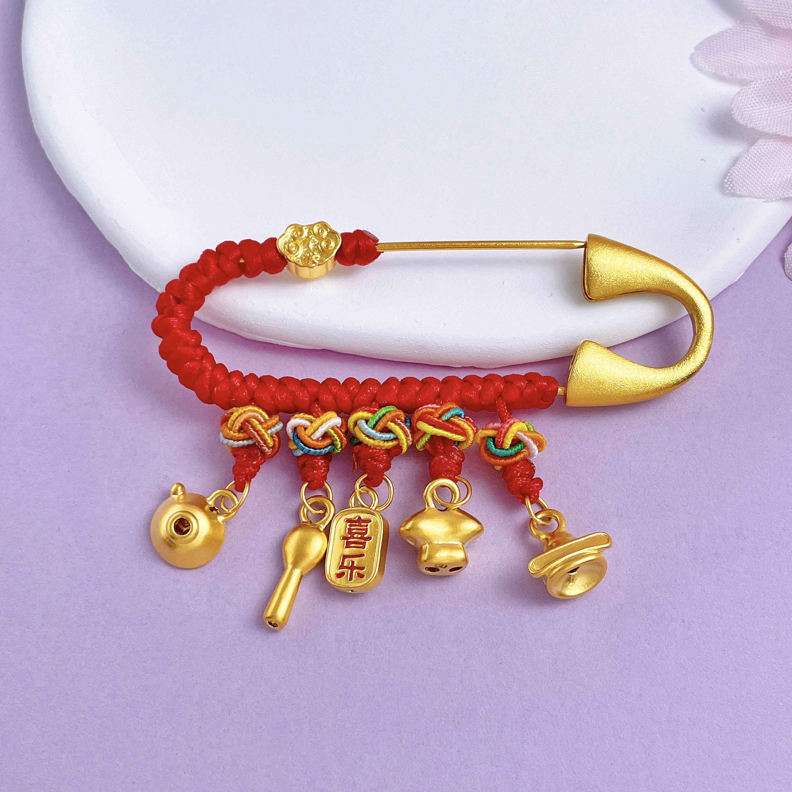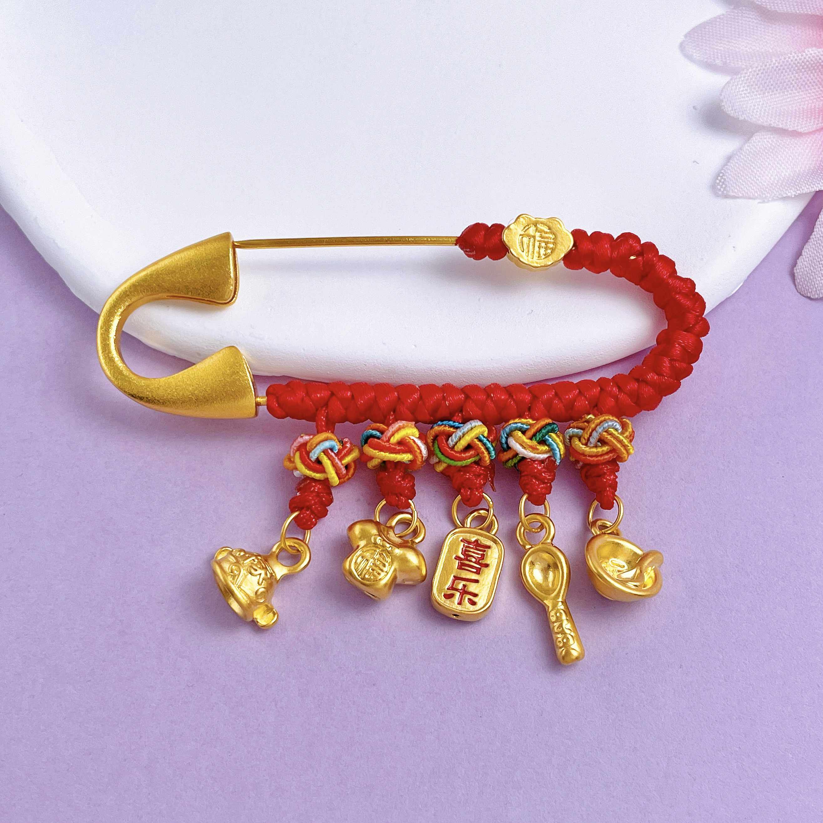 【限时克减150元】足金 #微硬金 #儿童/宝宝 无氰5D空心平安喜乐丰衣足食衣食无忧宝宝胸针孕妇压惊针胸针别针(AA5DXZ00001)预售产品下单后不退款不退货不换货不补差价