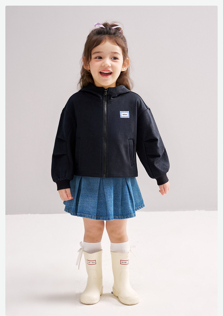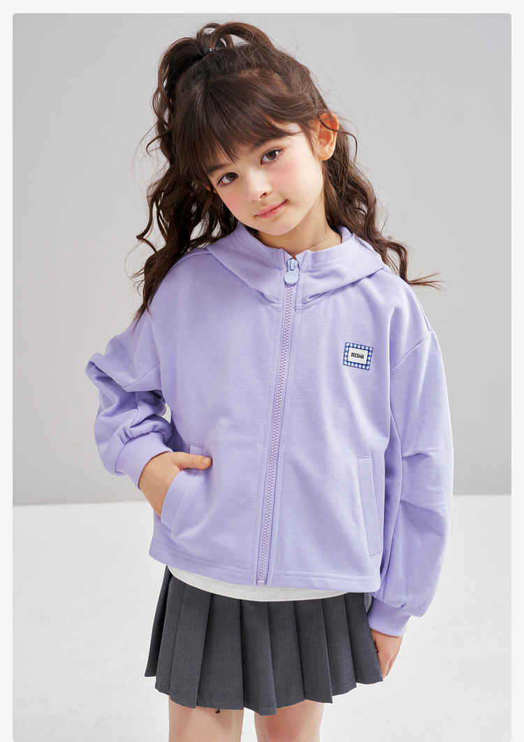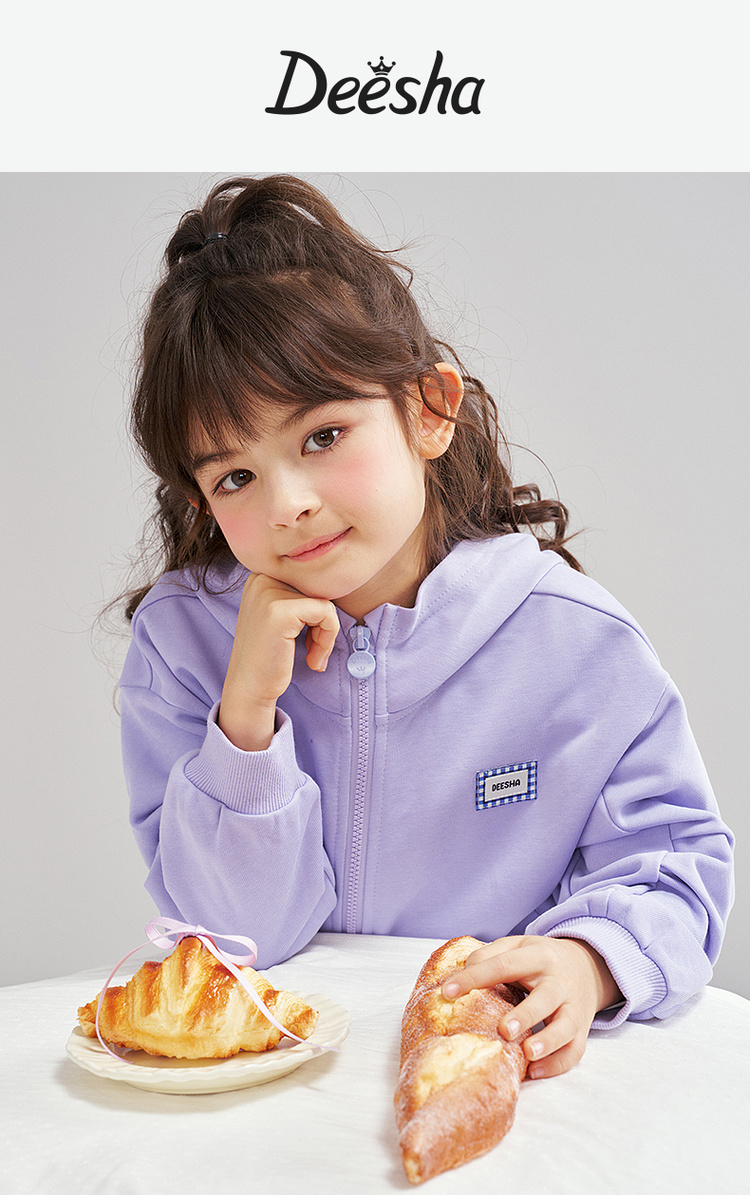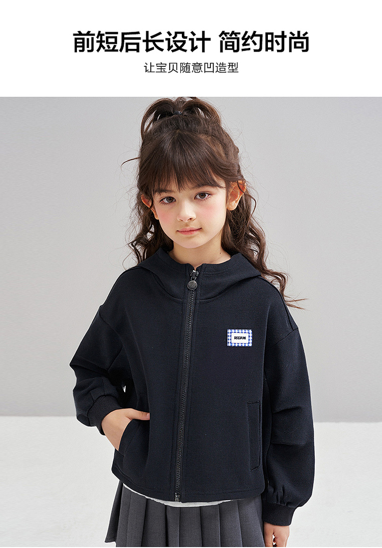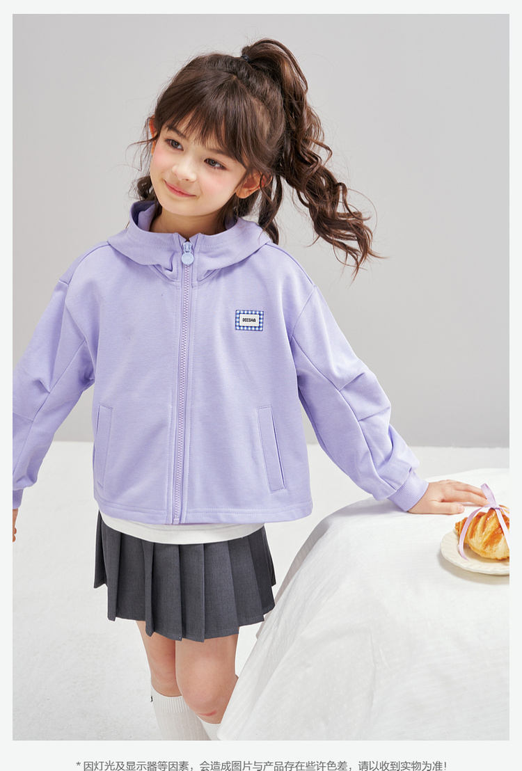 笛莎Deesha 2026春季女童时尚休闲宽松连帽针织外套
