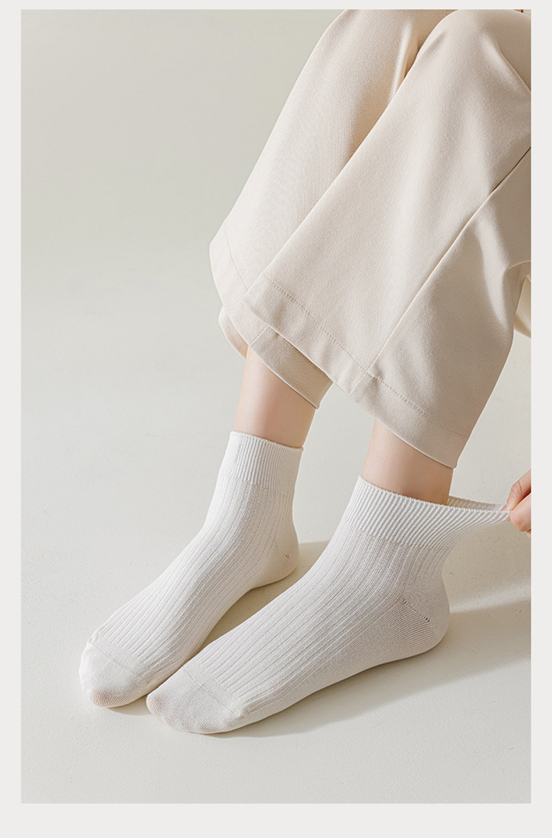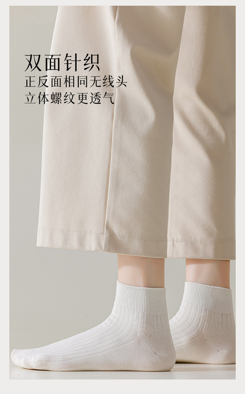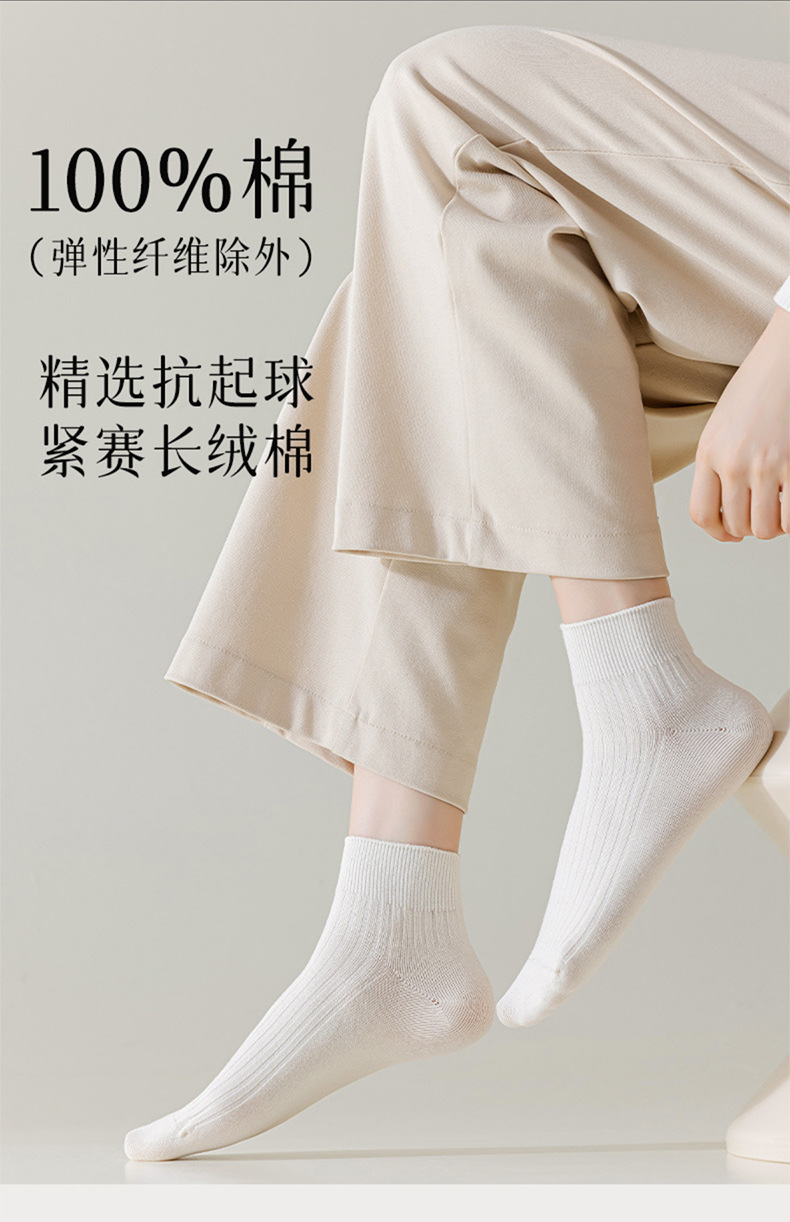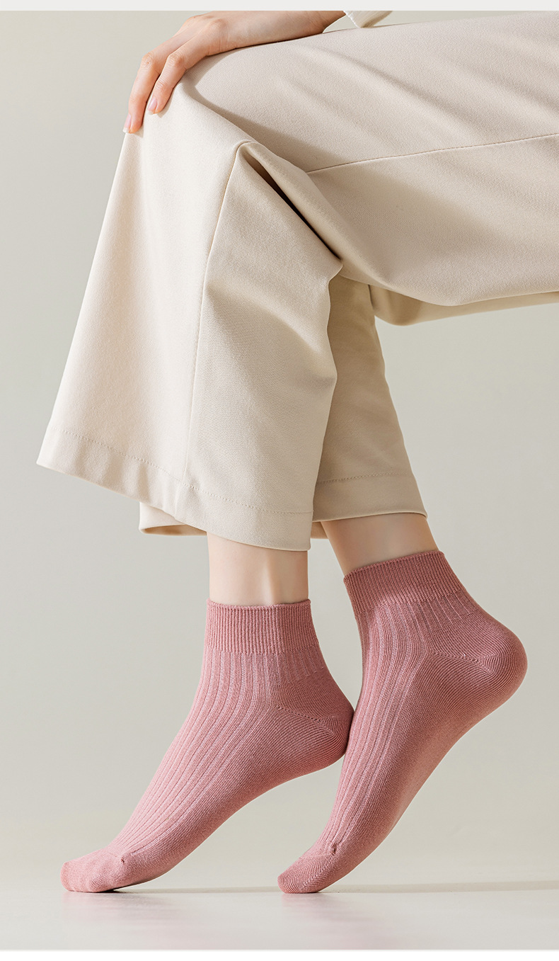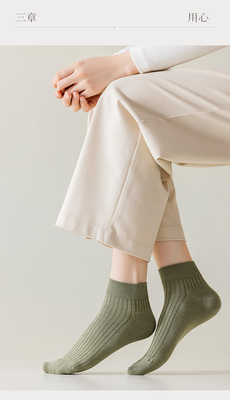 【女士纯色抽条短袜】女纯色抽条短袜棉质休闲运动袜子防臭抑菌吸汗短筒袜