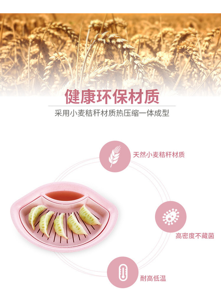 家用双层沥水盘 小麦秸秆创意饺子盘带醋调料碟扇形餐盘