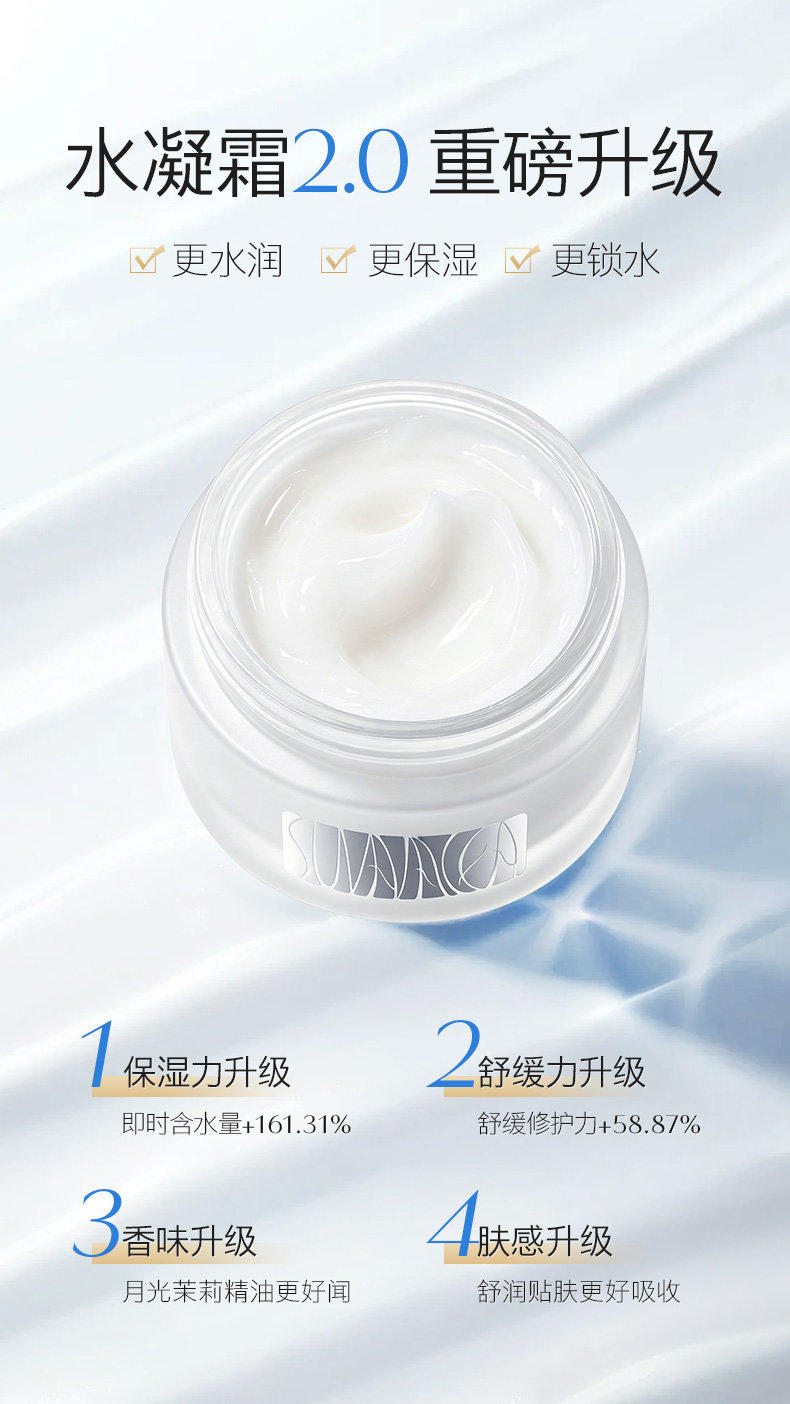 升级福利2瓶178元【盼夏保湿水凝霜2.0】72h巨保湿面霜 长锁水全新 水磁场高保湿面霜