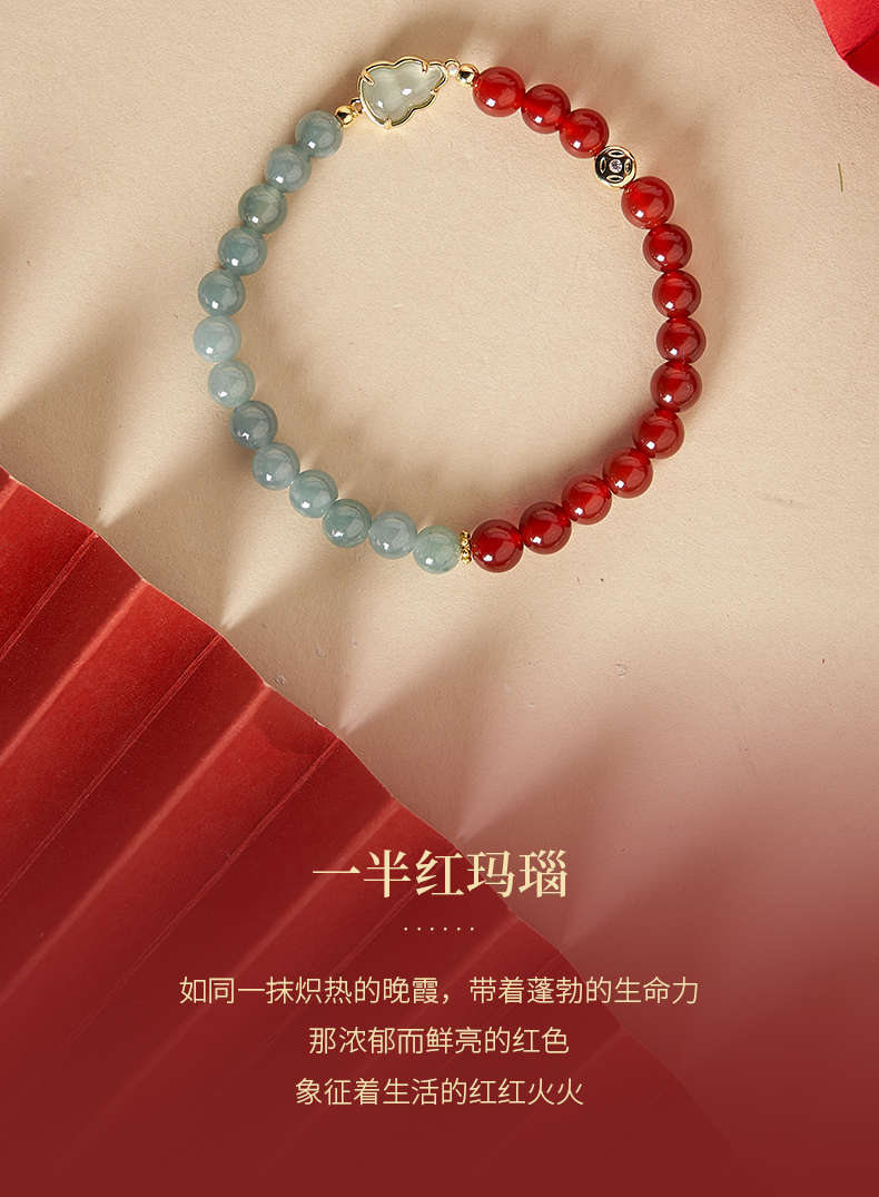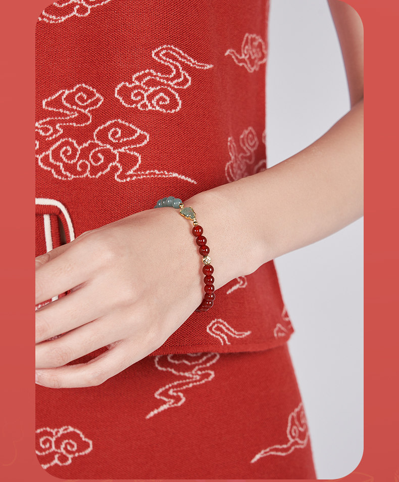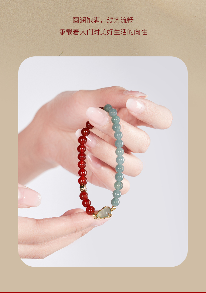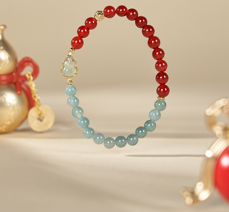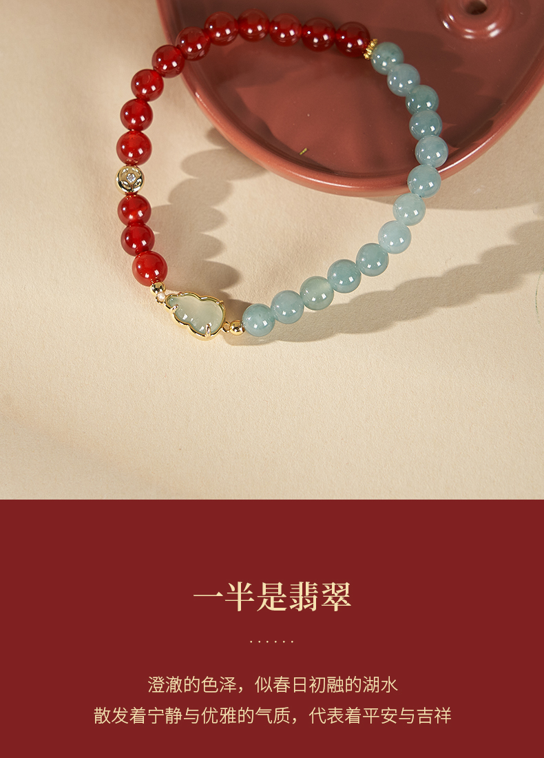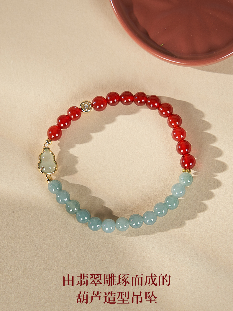 大英博物馆东方梦境系列翡翠葫芦红玛瑙手链