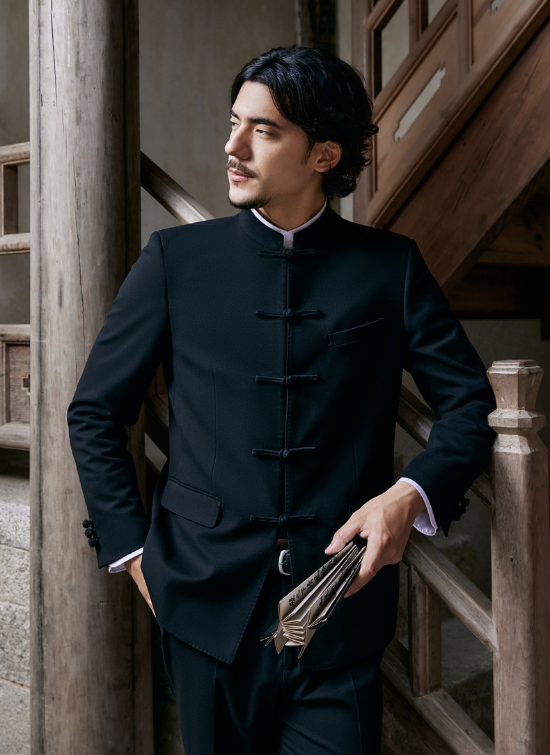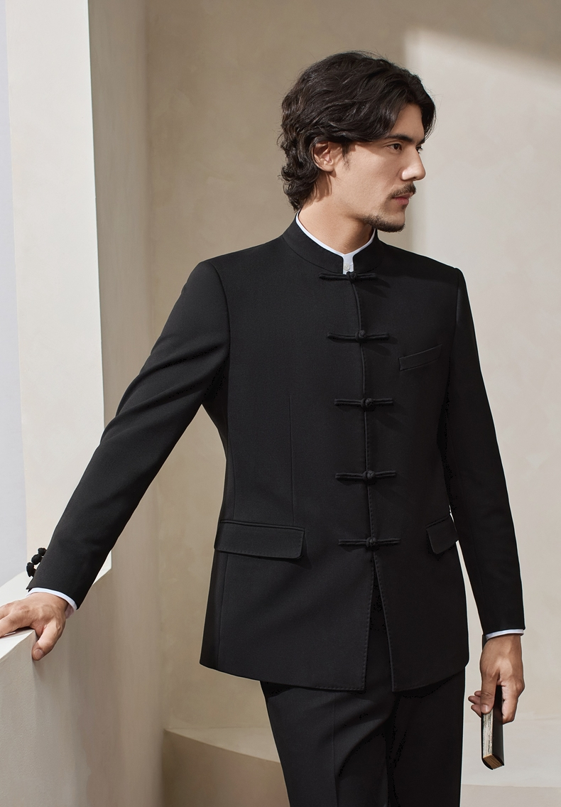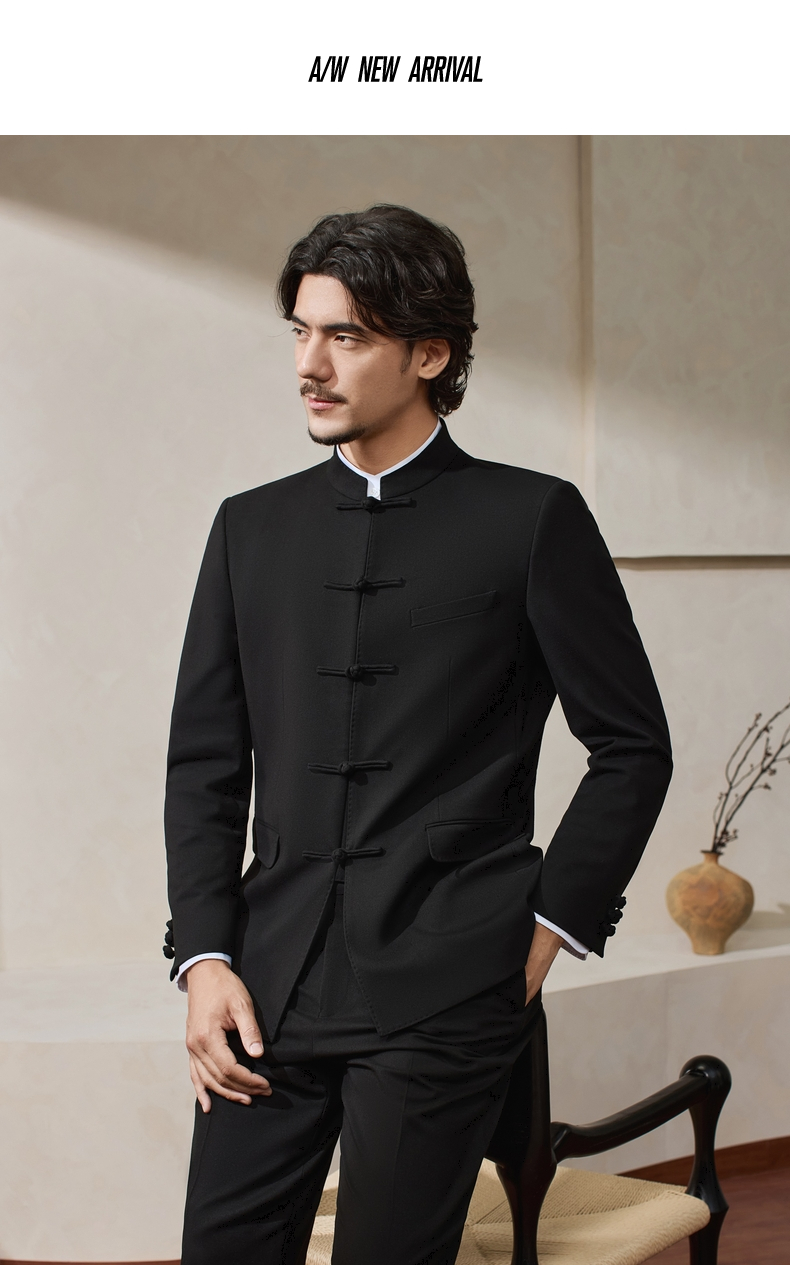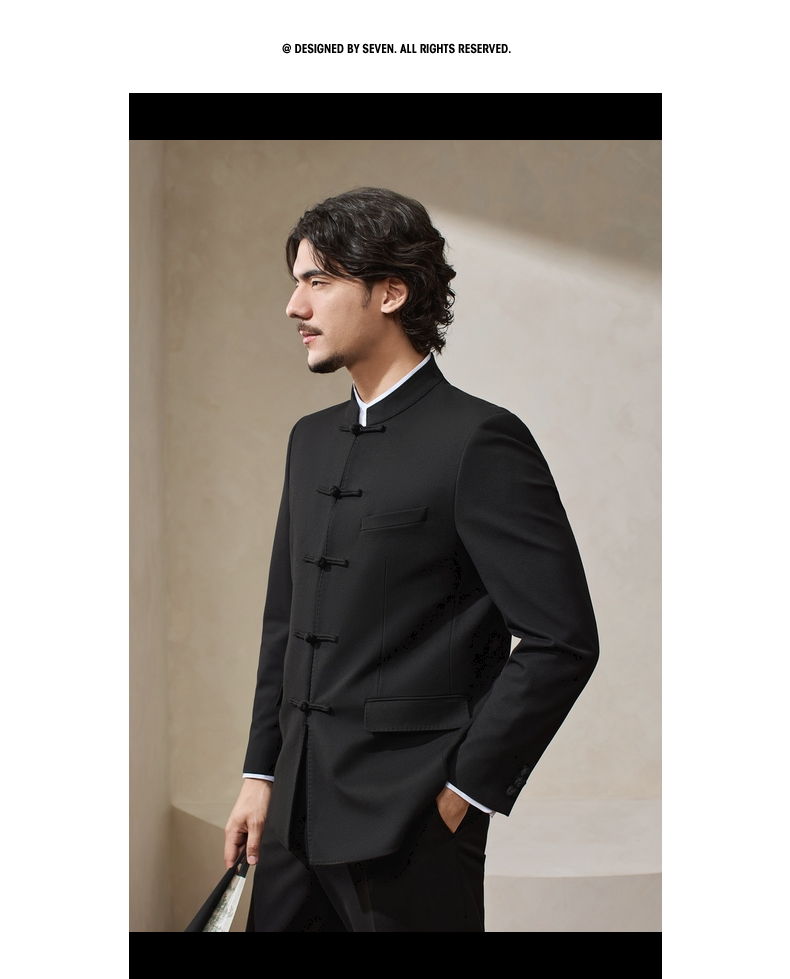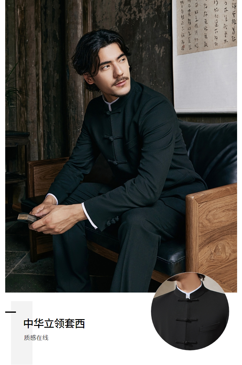 【婚礼季/中华立领/犀牛褶】柒牌男装西服假两件立领犀牛褶商务绅士套装129C70270