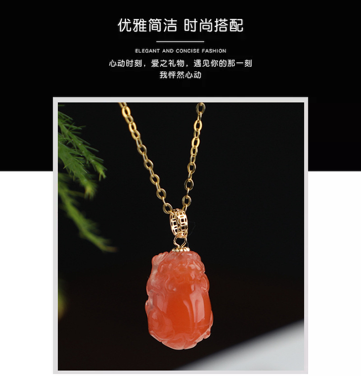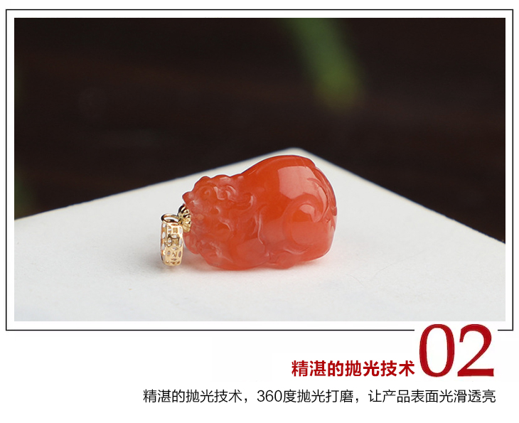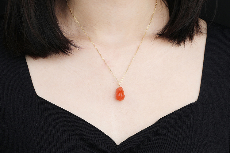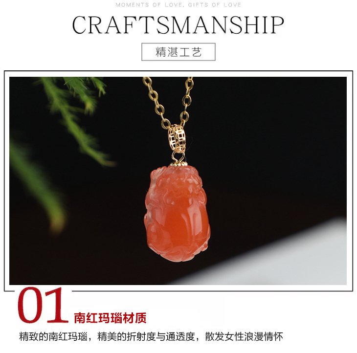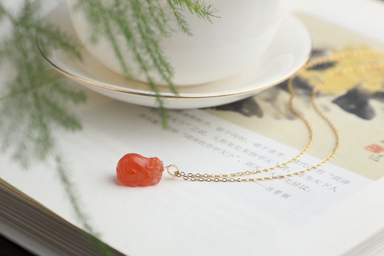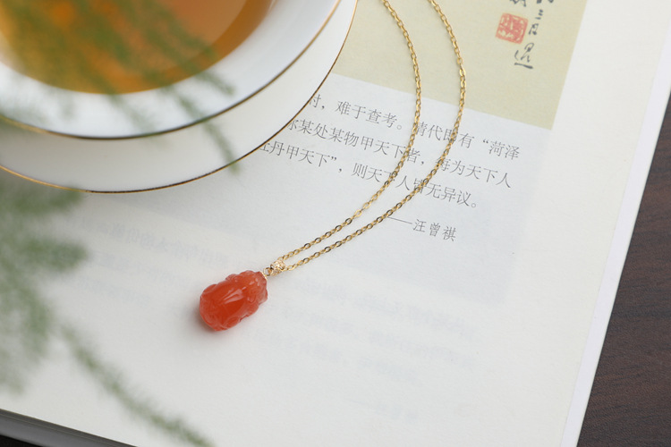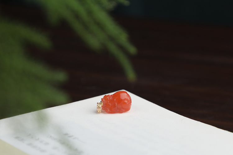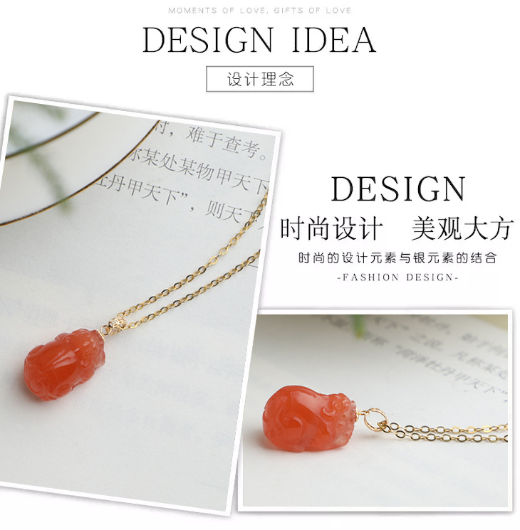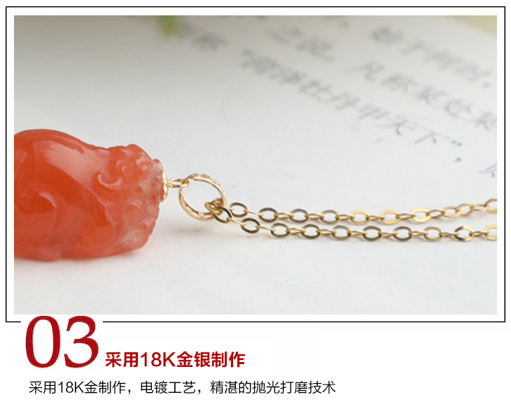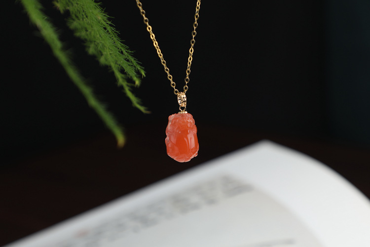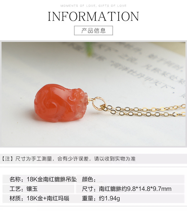 带证书18K金镶嵌南红玛瑙貔貅吊坠 文艺复古风天然玉石挂坠项链女 JXP10022
