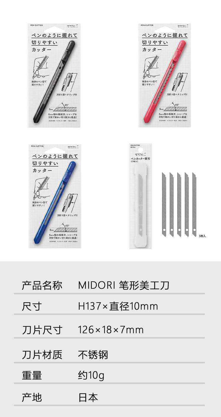 日本midori/便携式笔形刀美工刀/涂氟刻刀/学生手工DIY/文具大赏