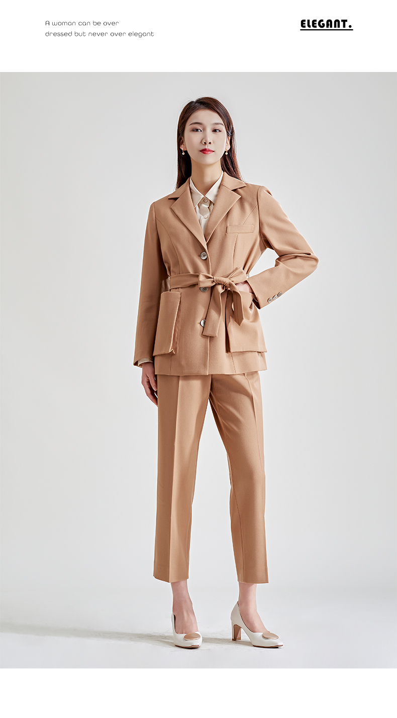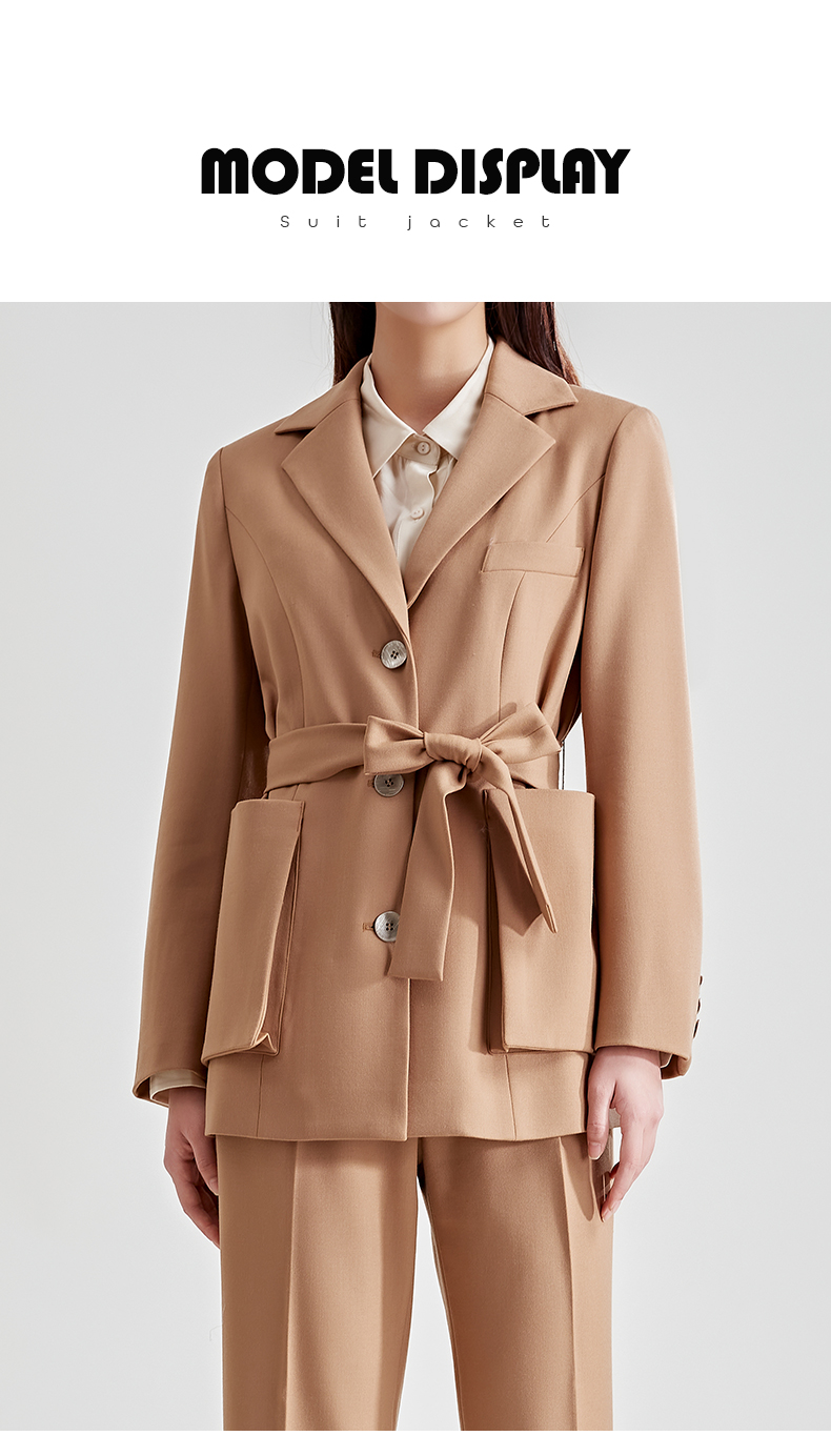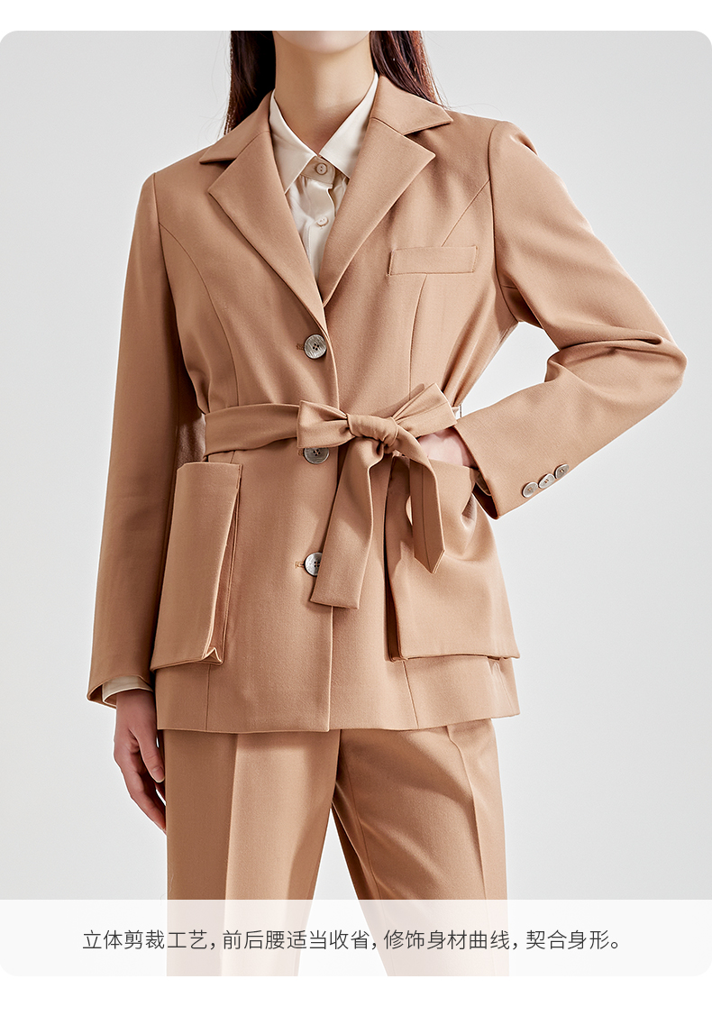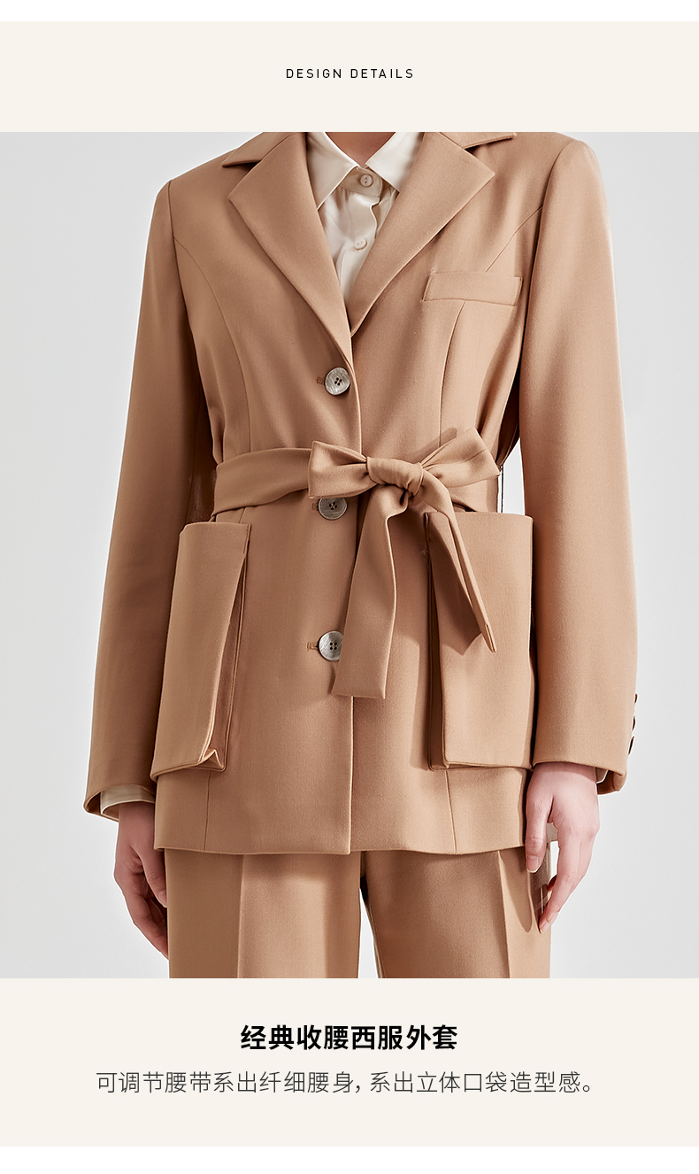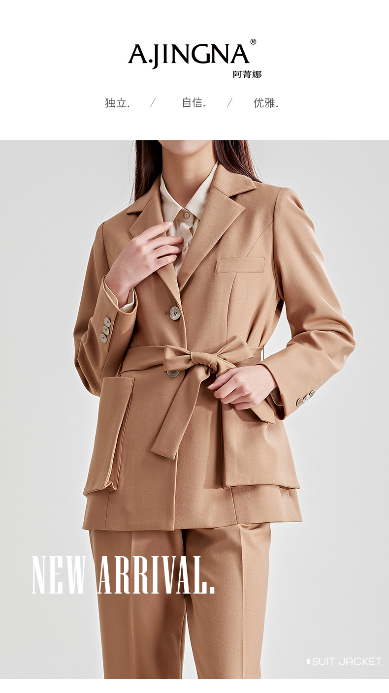 【特价款不退不换】阿菁娜经典款西服平驳领气质女士可调节腰带西装A27C108023