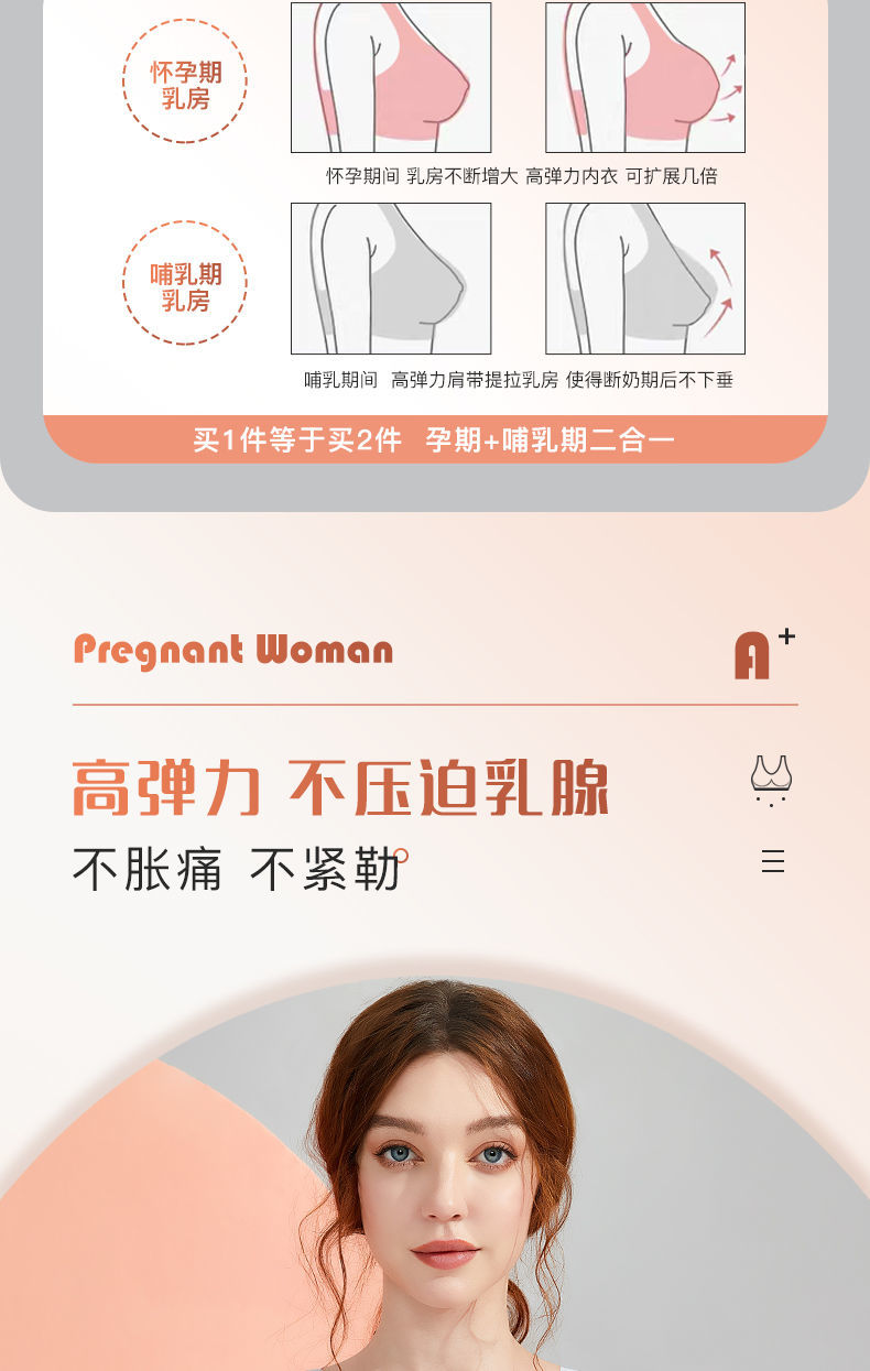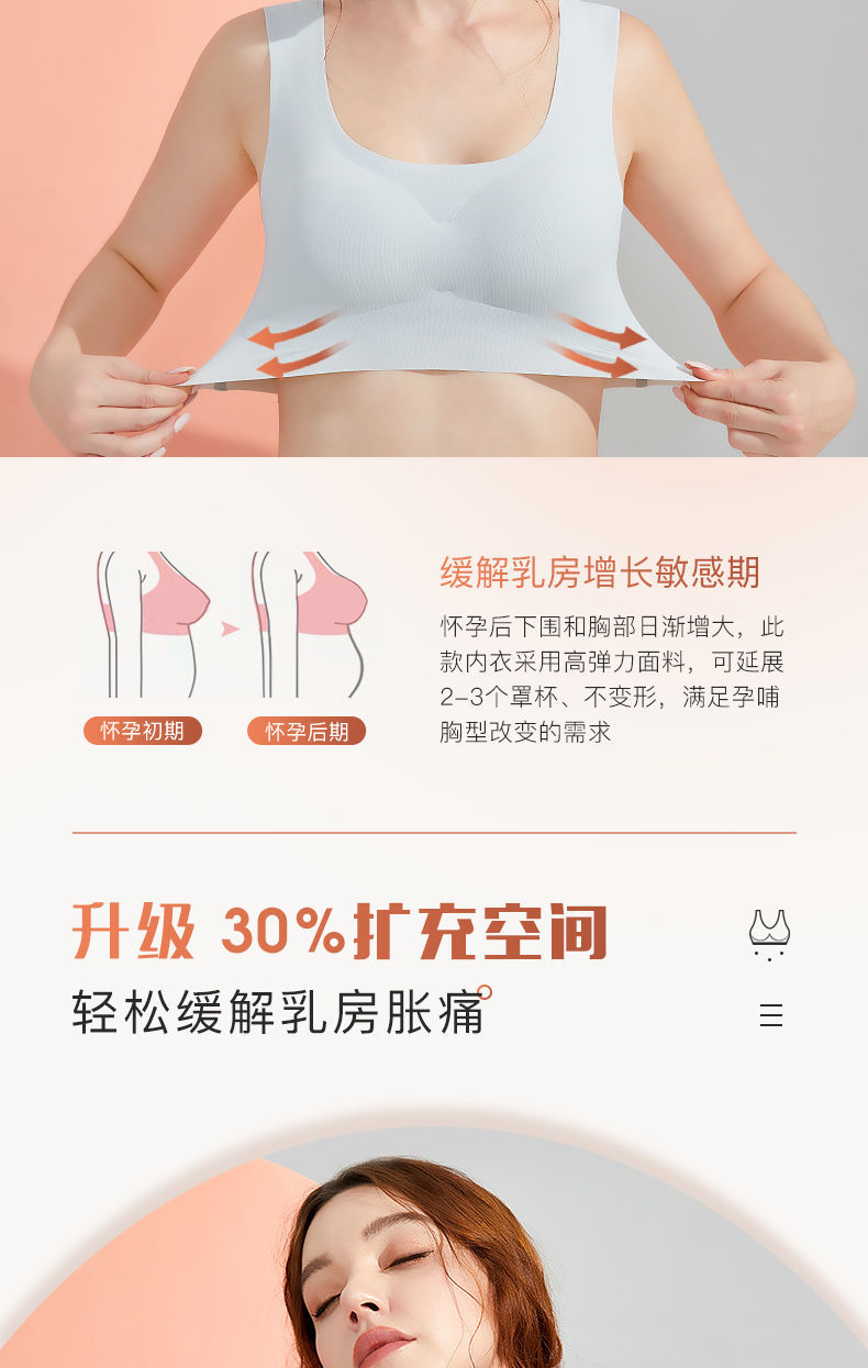 黛唯梵两件装孕妇内衣聚拢防下垂背心式怀孕期专用薄款比纯棉舒适睡眠文胸