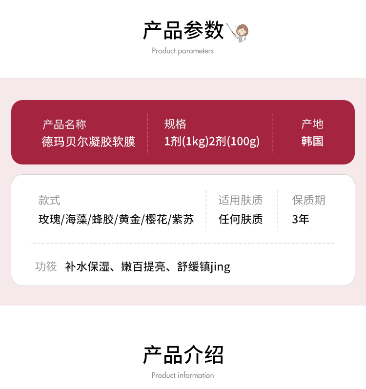 韩国德玛贝尔凝胶软膜 粉玫瑰藻黄金樱花面膜保湿补水收毛孔紧致镇定面膜