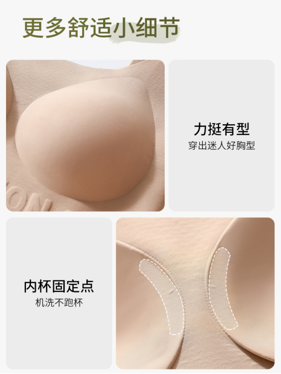 整件内衣经过多次创新研究 🔆设计了最贴合人体的无痕隐形美背 3D立体裁剪,胸部更贴合 大胸穿显小且有型 小胸穿有型且有料