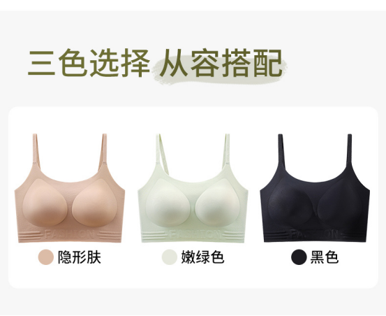 内衣一共有三个颜色可选 🔆黑色、隐形肤、嫩绿色 黑色、肤色比较的日常百搭 绿色会显得比较小清新 尺码最大可以穿到145斤
