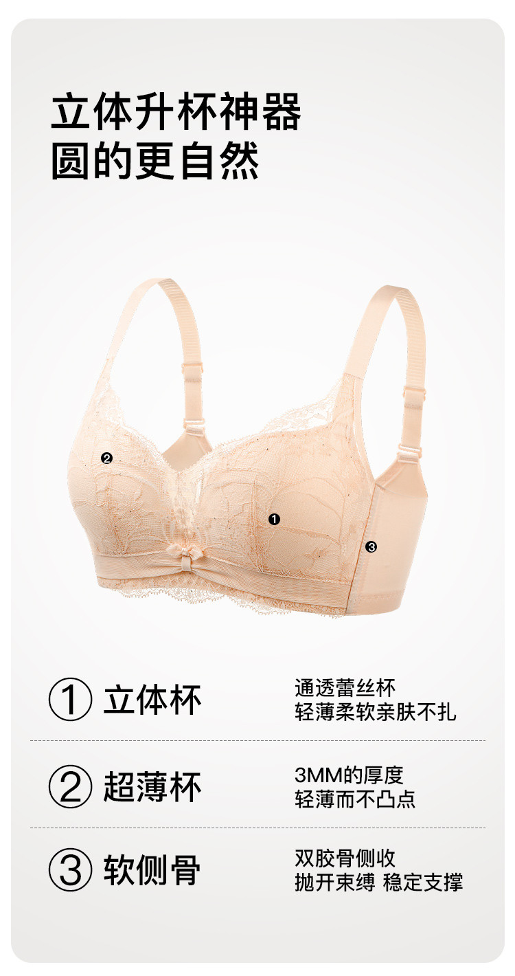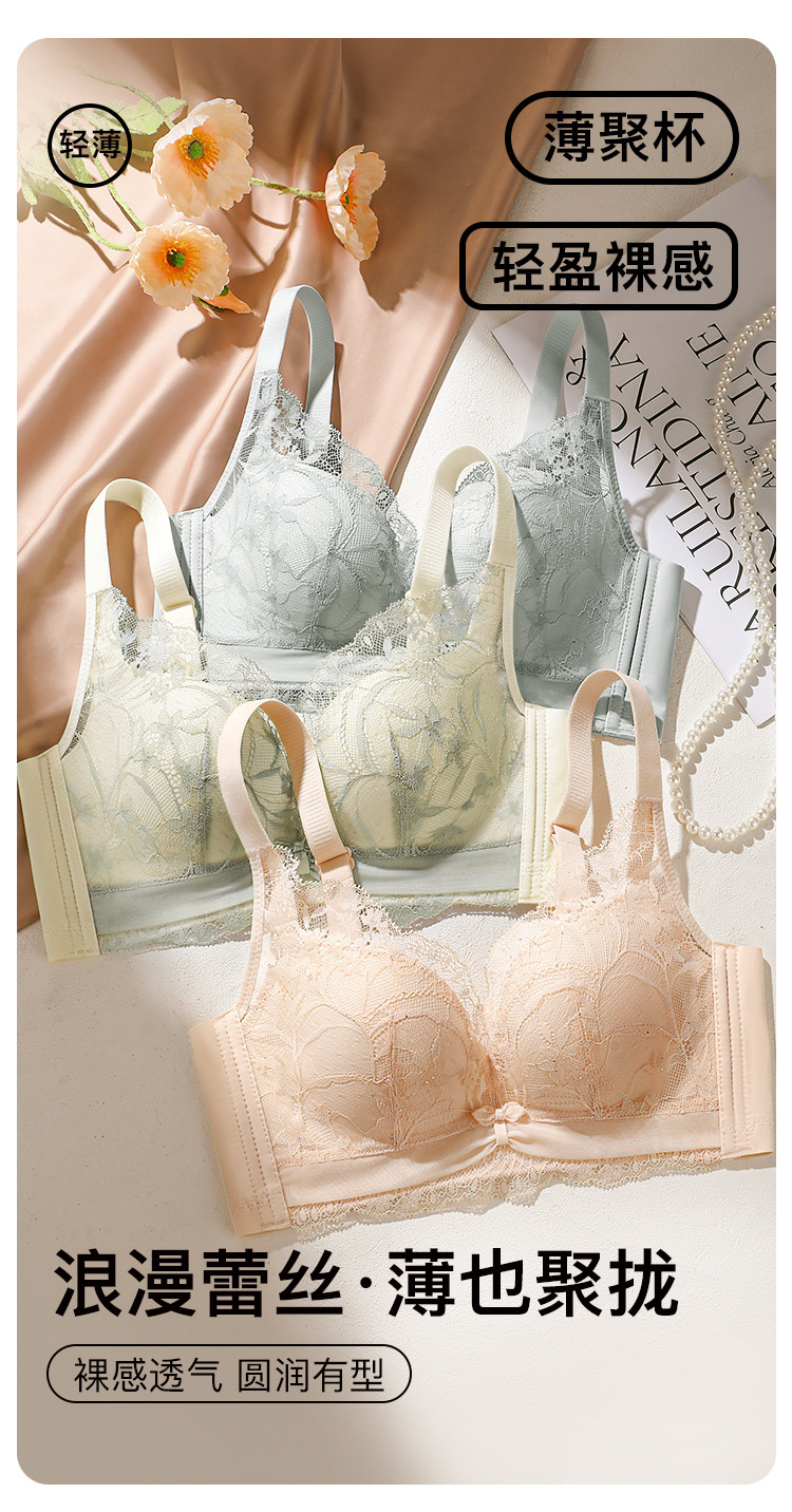 琉璃月影 文胸(VIP)【小胸聚拢 透气薄杯】性感蕾丝调整型收副乳薄款文胸