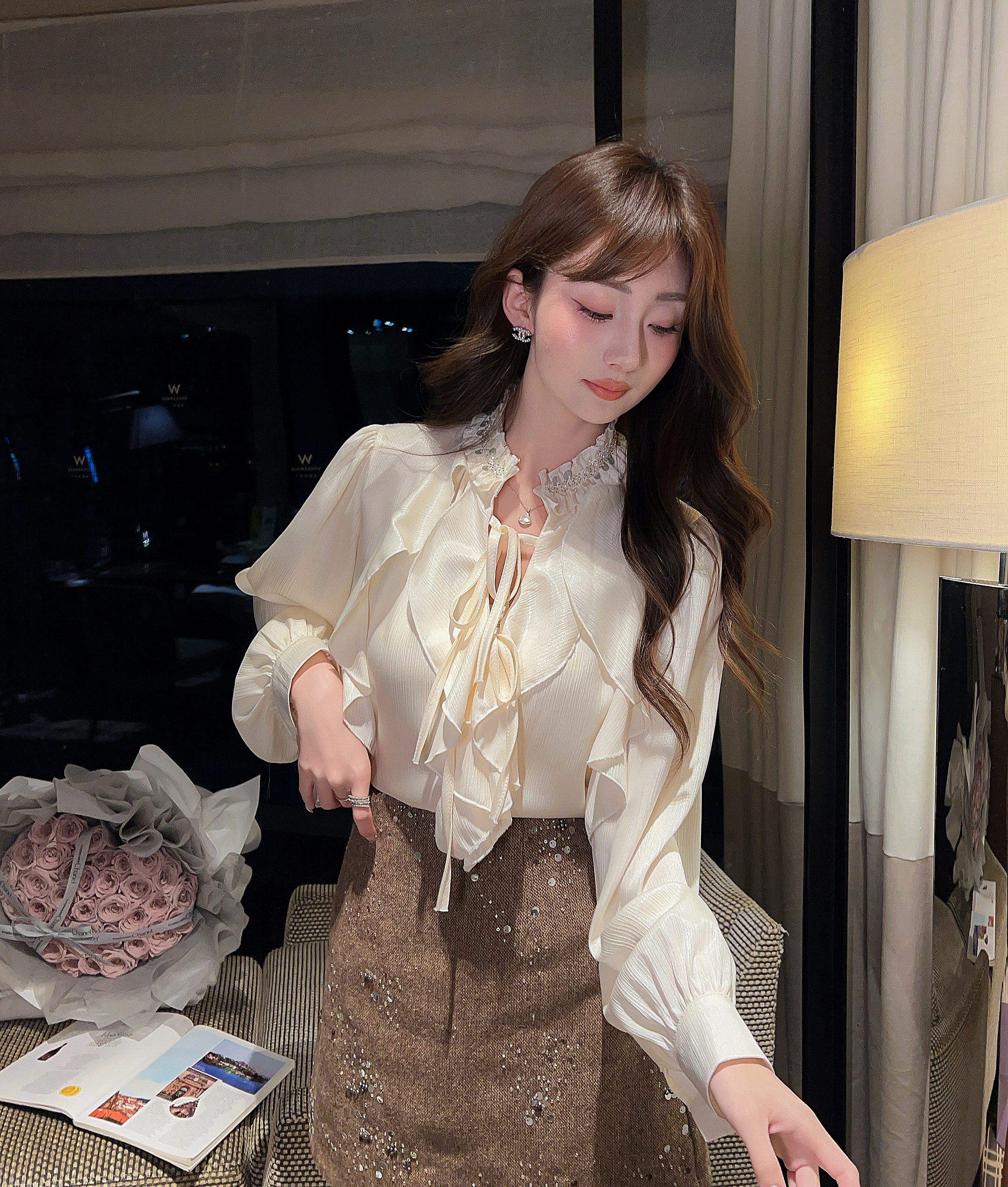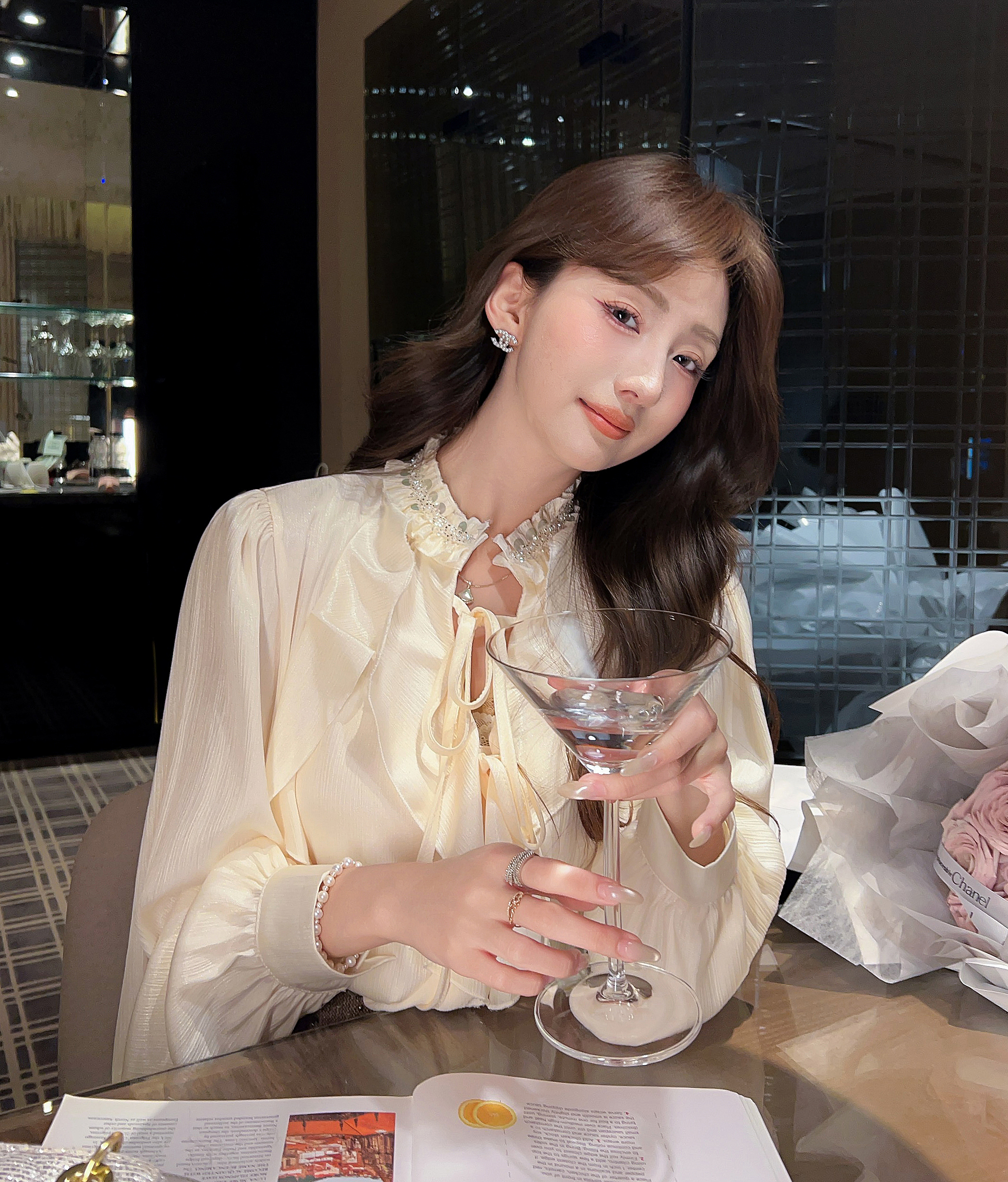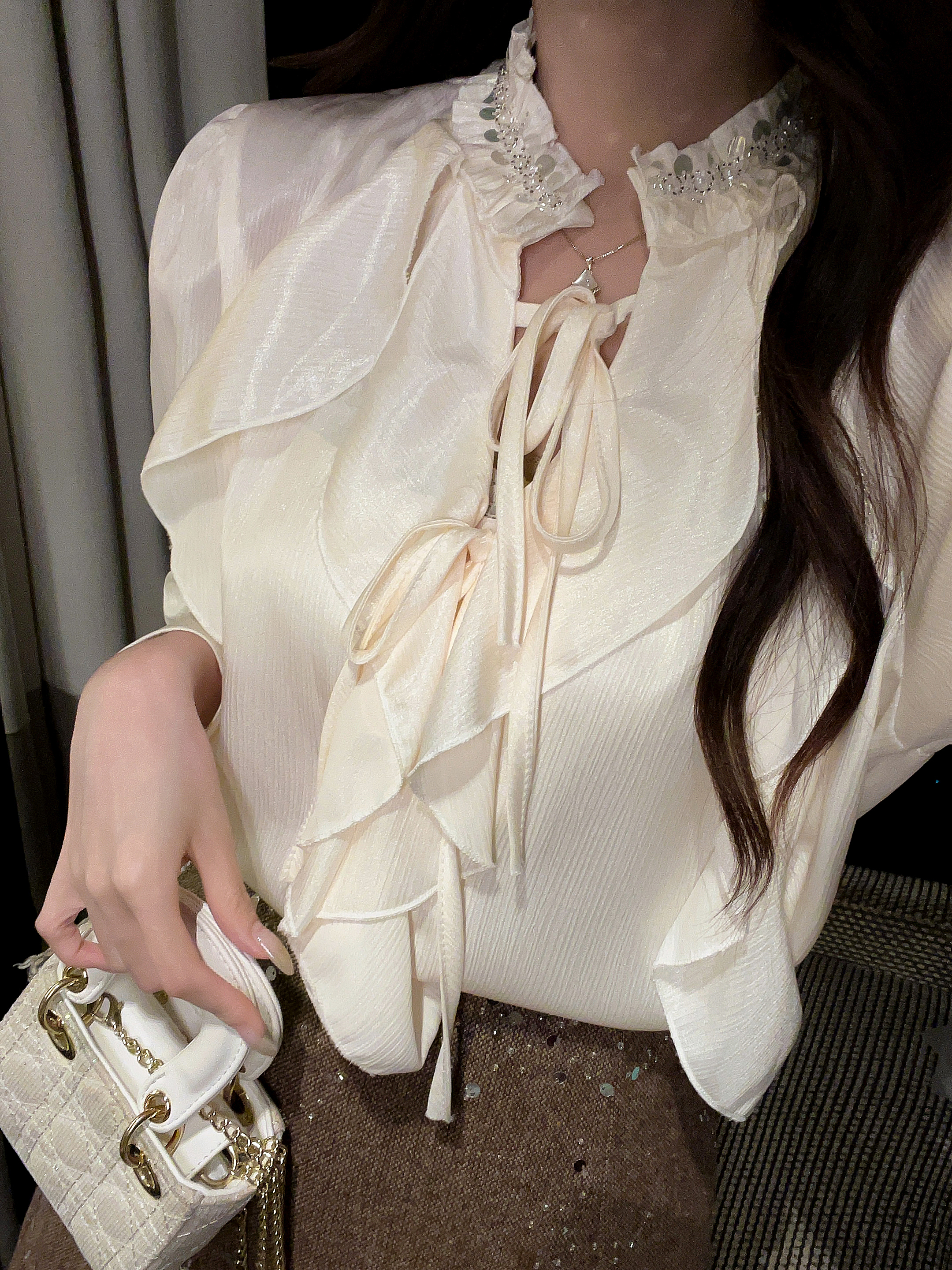 张心子【琉光漫歌】法式小资系带荷叶边雪纺衫女春新款洋气衬衫 U2602077