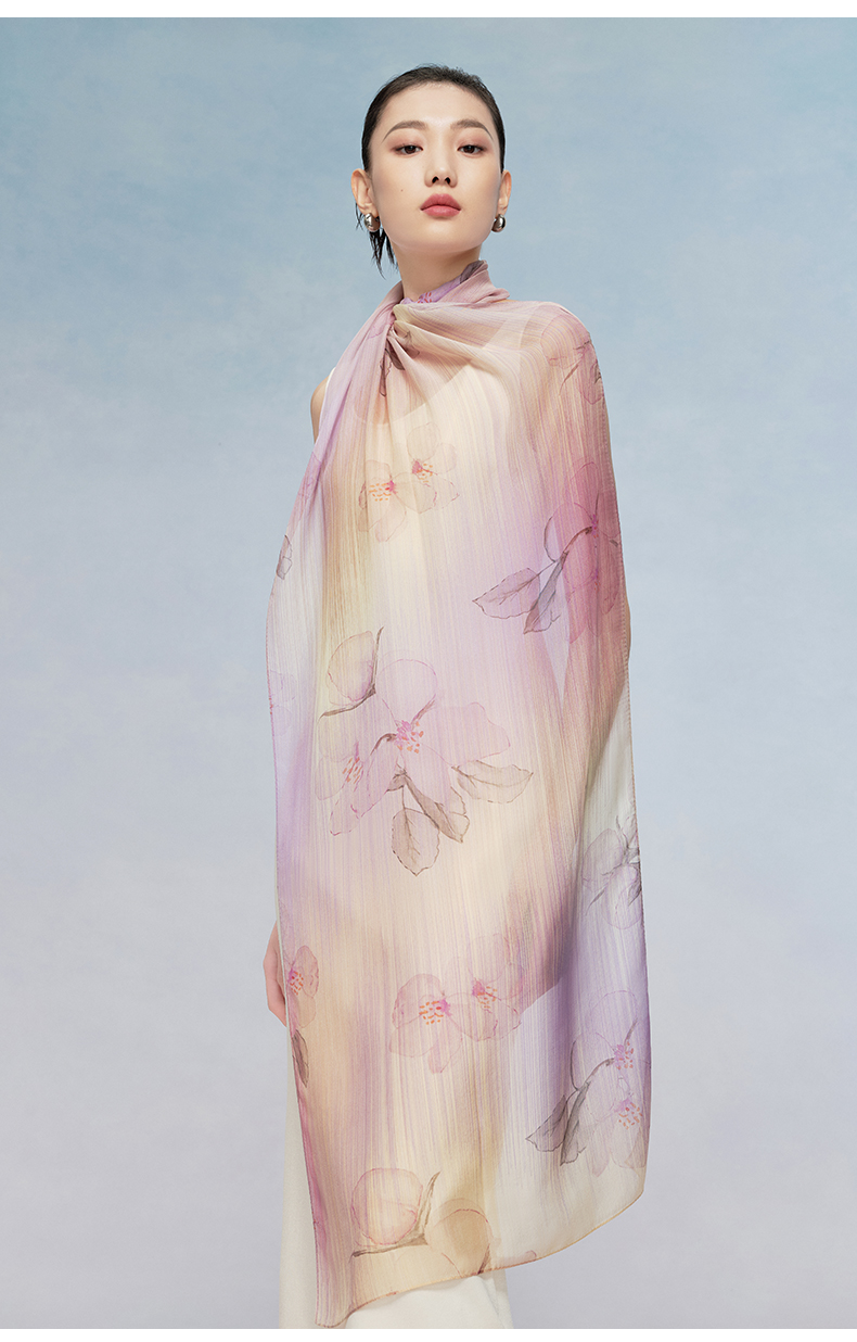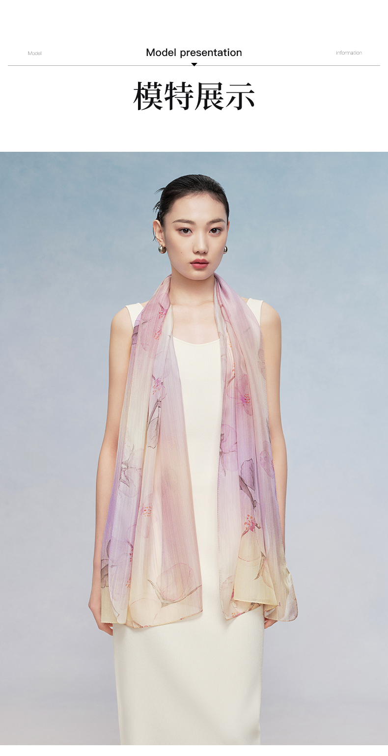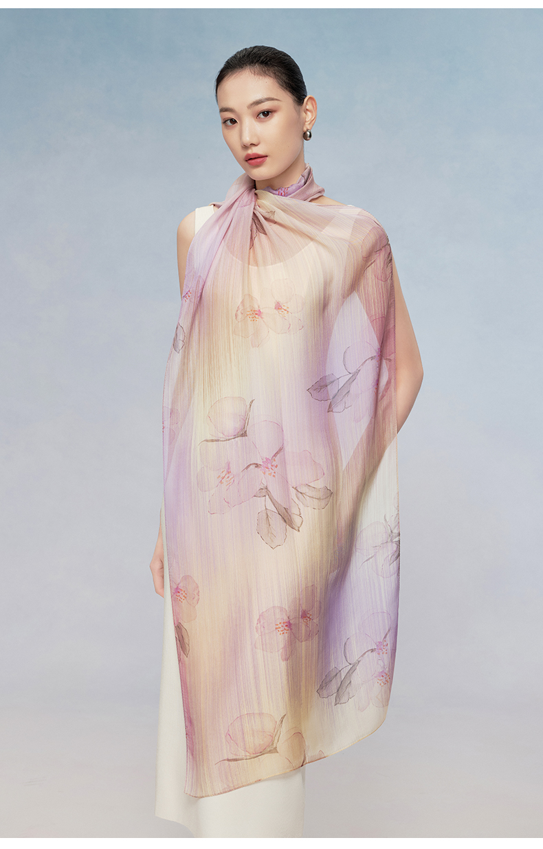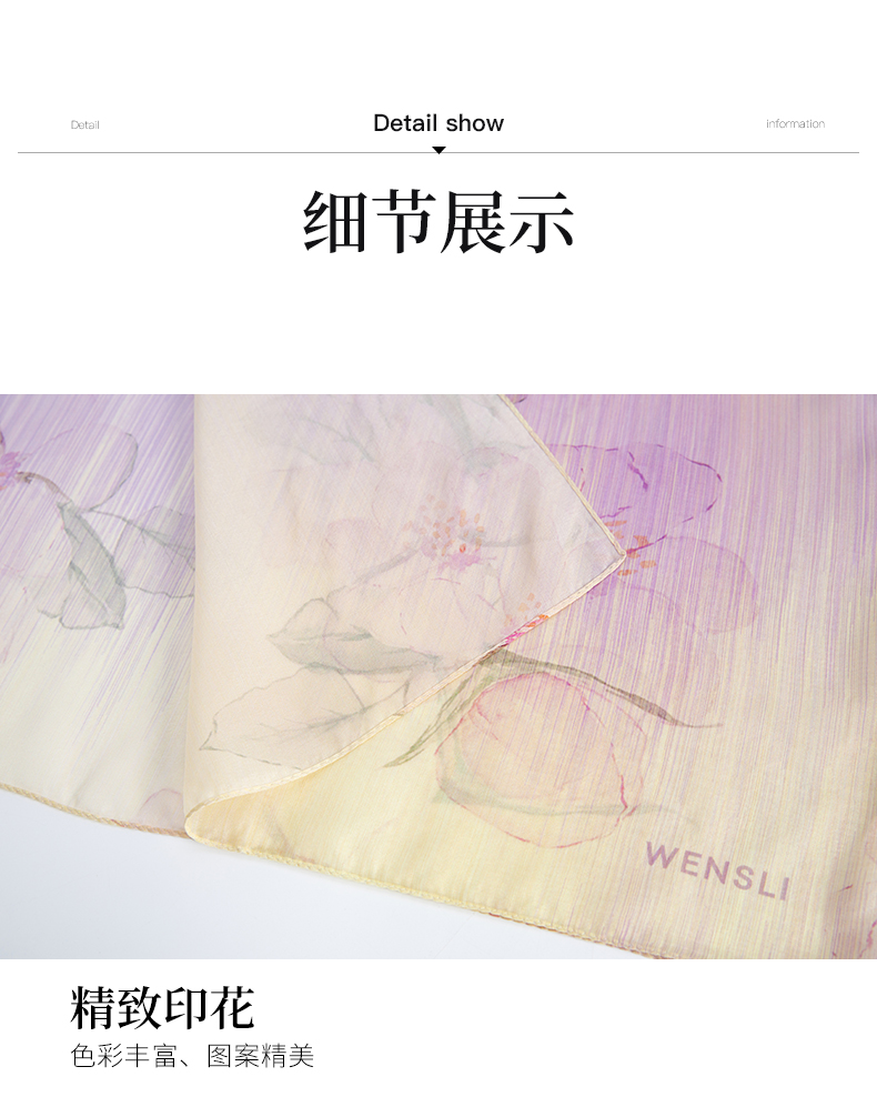 万事利“露华浓”63厘米双面印花真丝中方巾