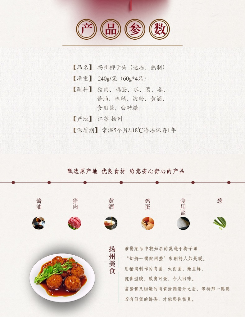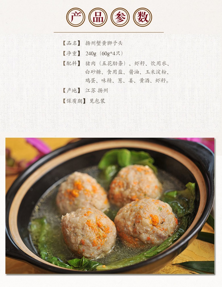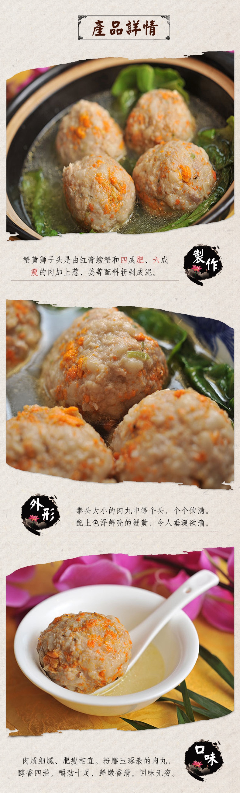 五亭桥 蟹黄狮子头+原味狮子头 经典淮扬菜 真空包装 手工精制 味道鲜美 口感地道 营养健康