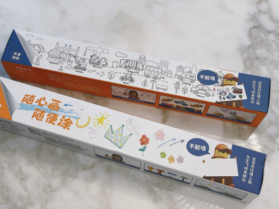 我们千万不要怕麻烦就去打压孩子爱涂鸦的天性, 反而应该给他准备这种画纸, 让他尽情的发挥, 给他足够的空间, 他就不会去墙上画了。 可以让宝宝的想象力得到尽情的释放, 反过来也能用, 一点儿也不浪费, 画完了卷起来还不占用空间。