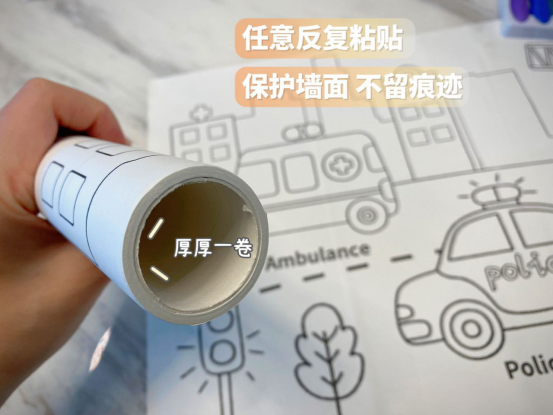 不脏墙🉑️贴画纸,3米长哦 🌈可以粘贴的画纸,贴墙上贴桌上,想画哪里贴哪里,保护涂鸦敏感期宝宝的想象力与创造力; 🌈可反复粘贴,不伤墙面爸妈放心; 🌈蜡笔、水彩笔、彩色铅笔,各种绘画材料都能涂;