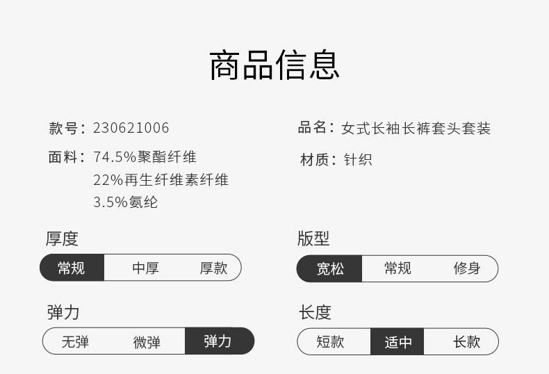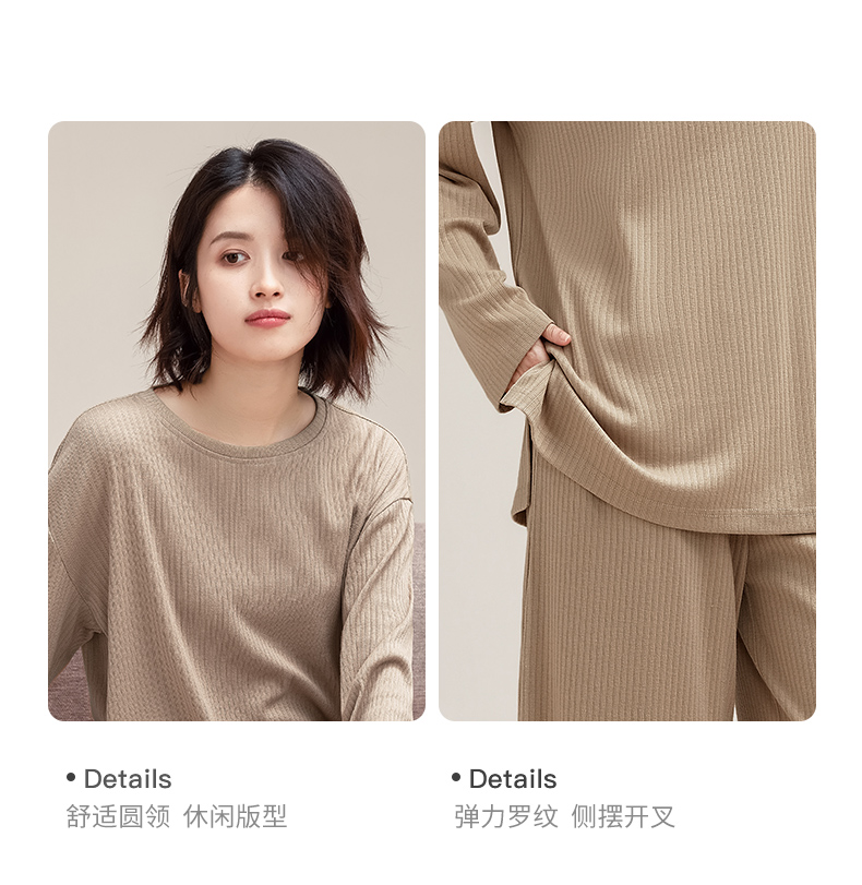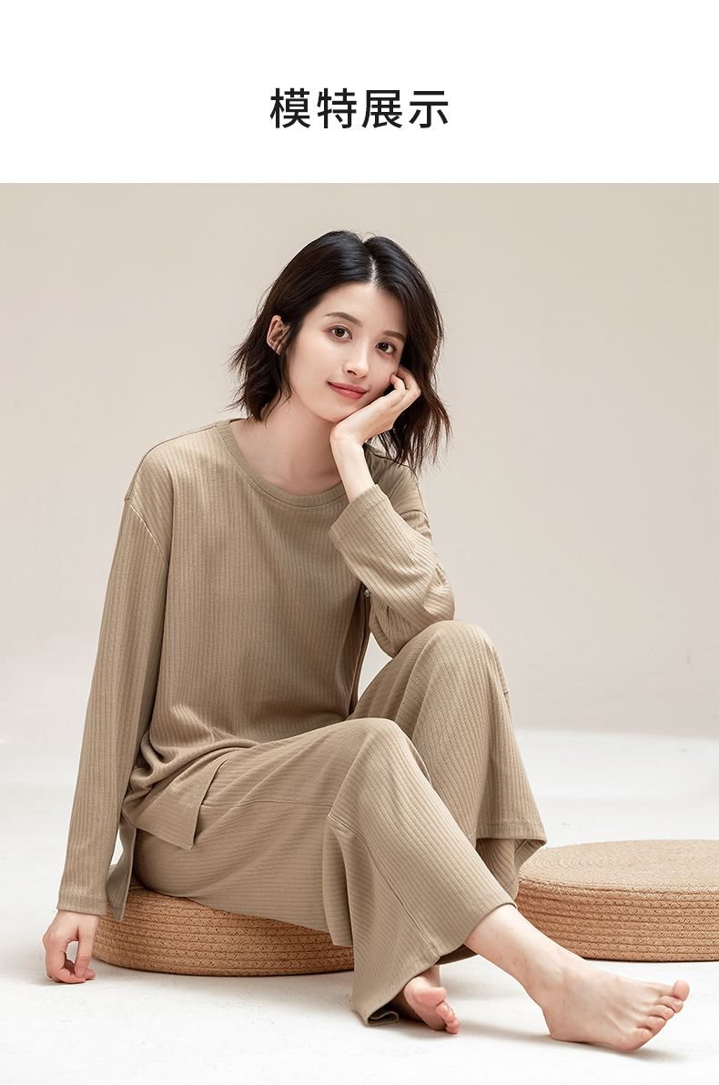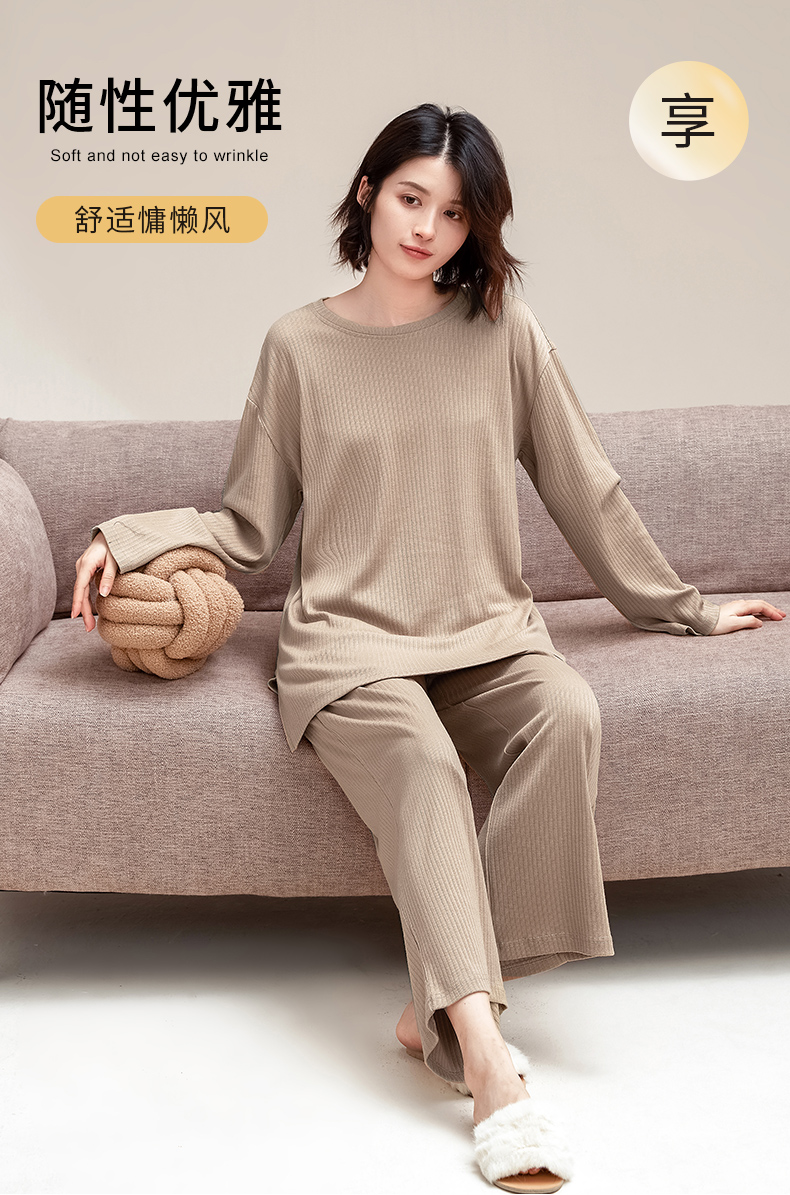 康妮雅睡衣家居服 女式长袖长裤套头套装