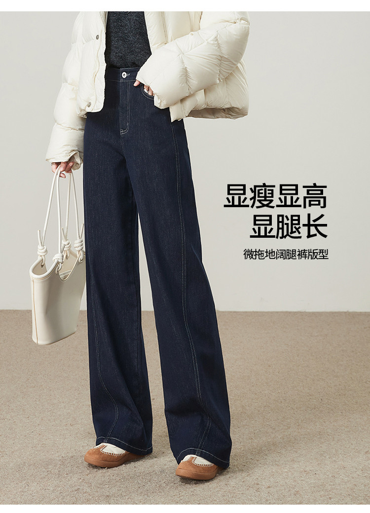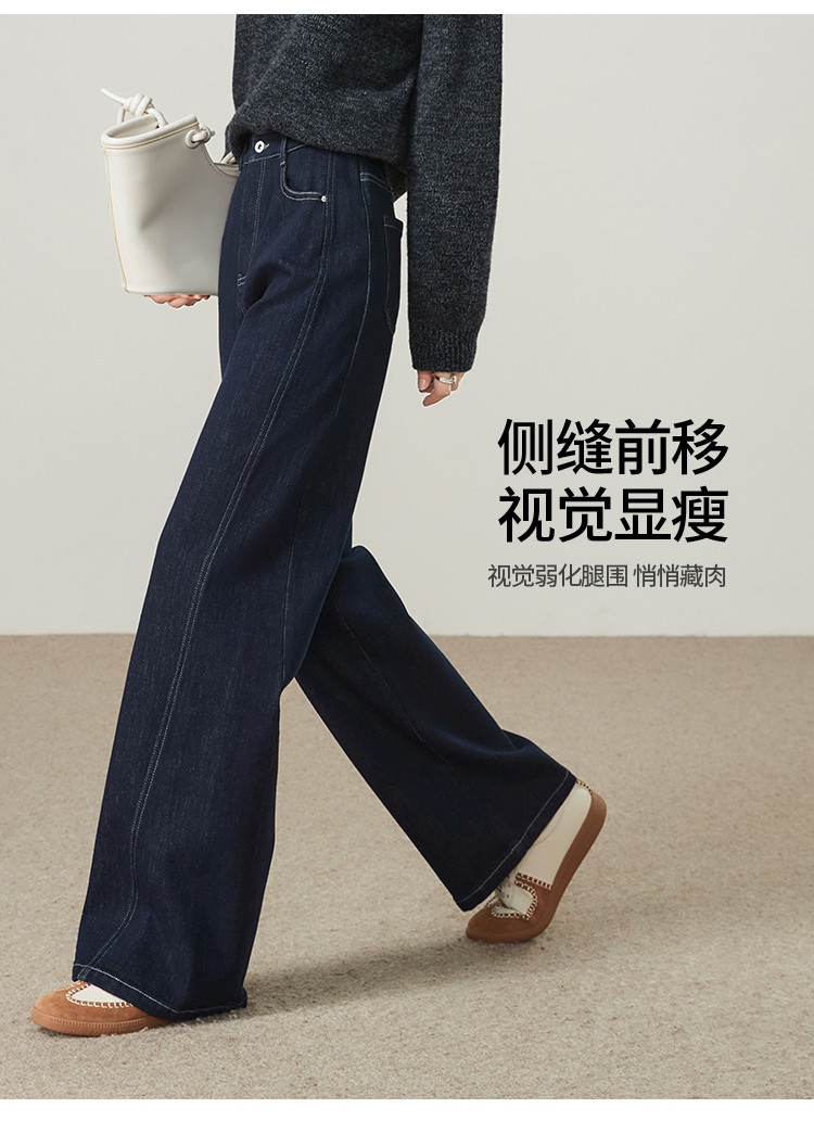 【初春!显瘦-牛仔阔腿裤】逸阳早春侧缝前移拉毛厚牛仔裤8838V