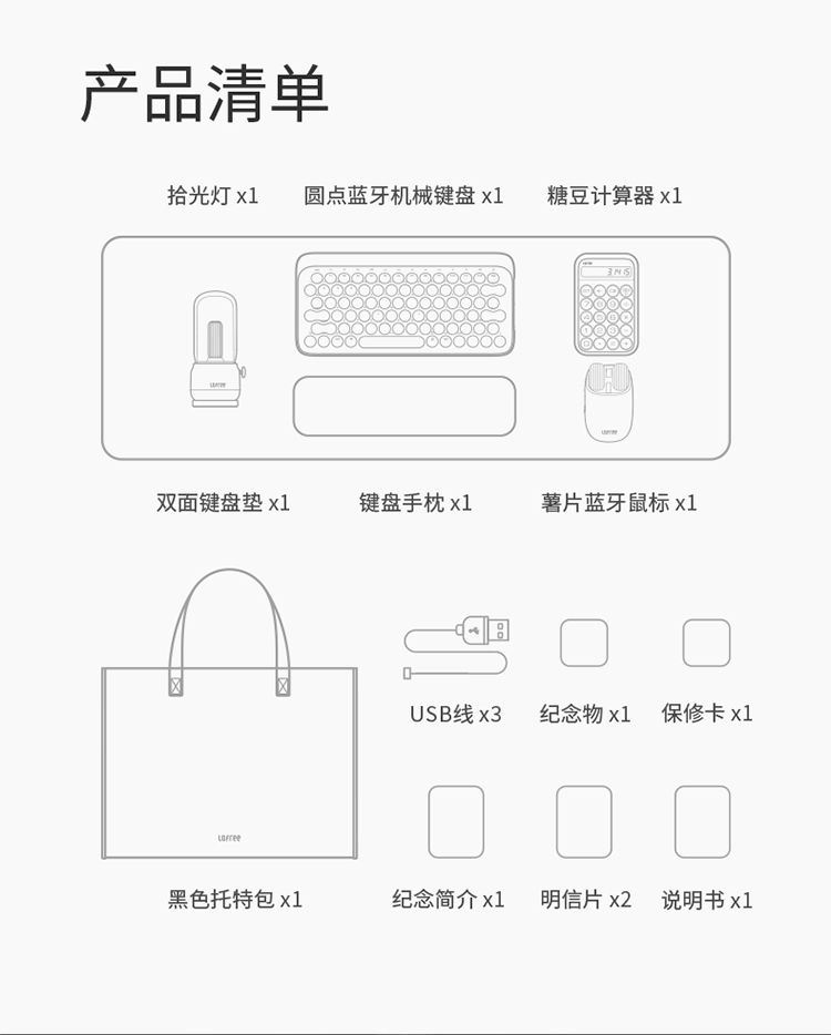 洛斐LOFREE EH117 墨金键盘套装6件套