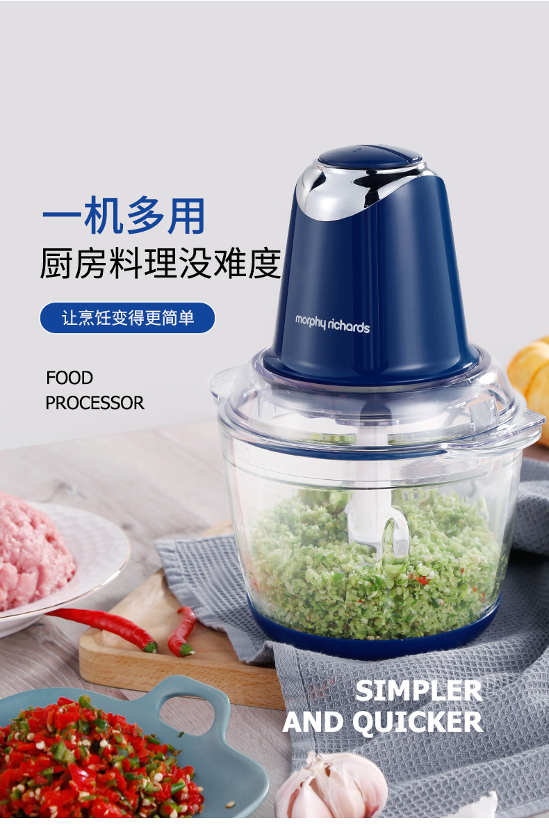 摩飞电器(Morphyrichards) 绞肉机家用电动辅食料理机打蛋机倒蒜机碎肉机MR9400 标配