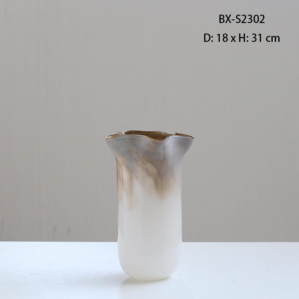 北欧轻奢创意渐变手工波浪口花瓶餐桌电视柜家居软装装饰白菜花瓶