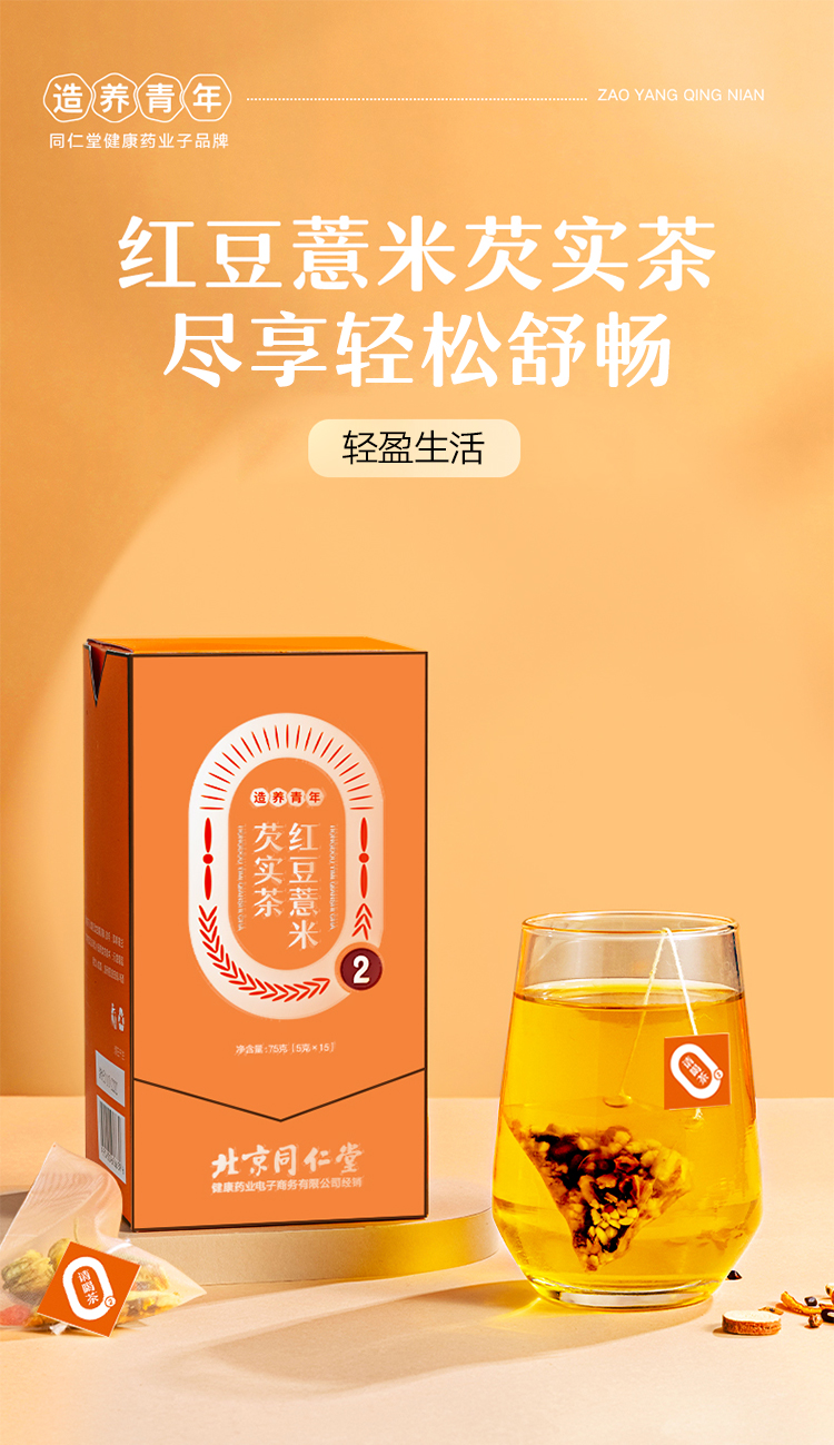 北京同仁堂 造养青年 红豆薏米芡实茶-75克 赤小豆薏苡仁茯苓芡实大麦组合型茶 5g*15袋