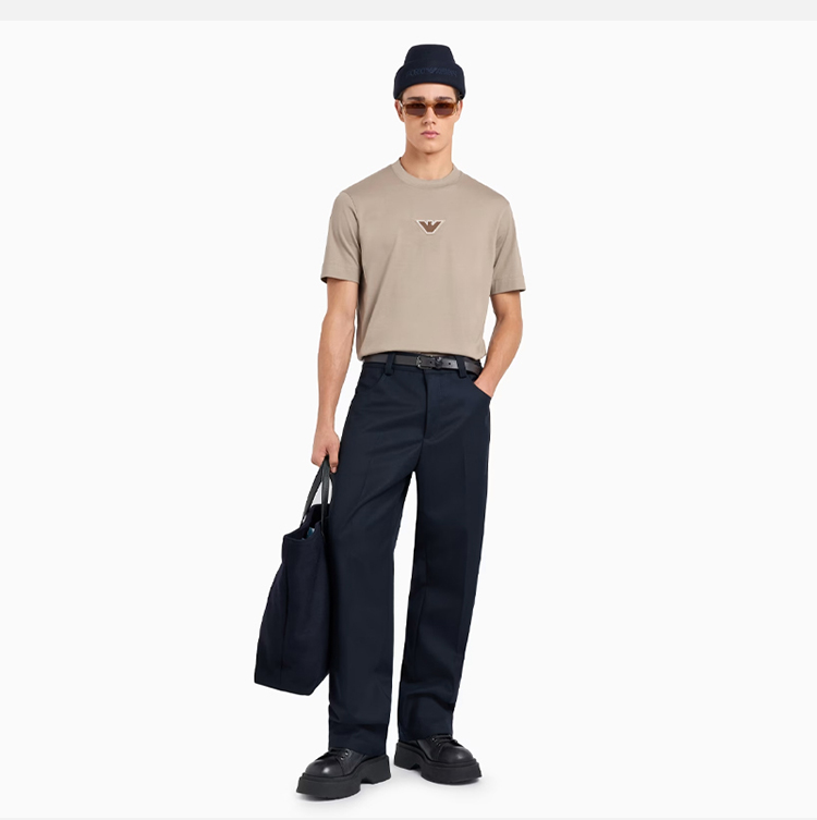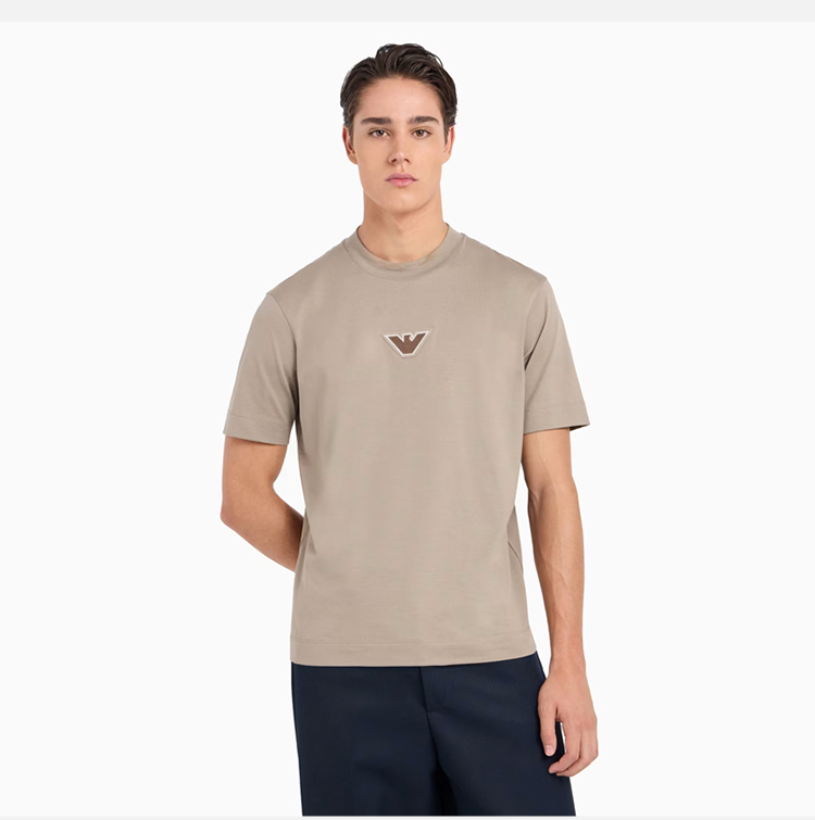EMPORIO ARMANI 阿玛尼 男士 ASV 徽标压纹贴片轻质平纹针织圆领短袖T恤 土黄色 6D1TD7 1JOCZ 0152