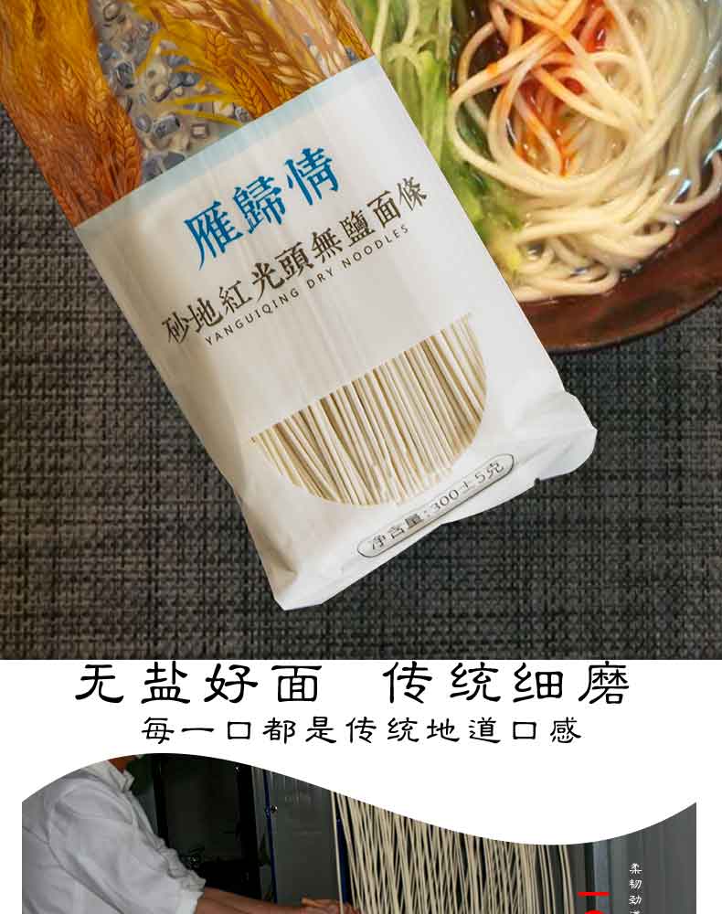 雁归情砂地红光头无盐面条300g