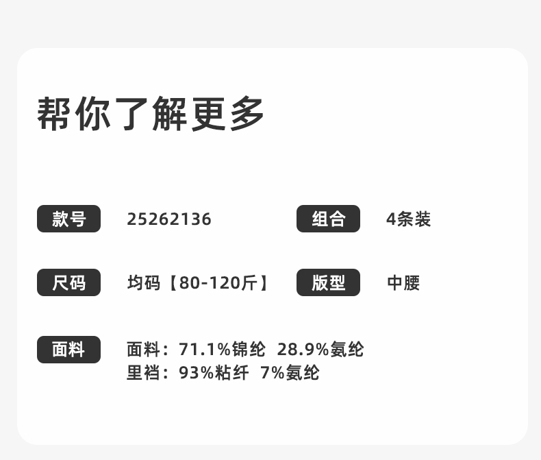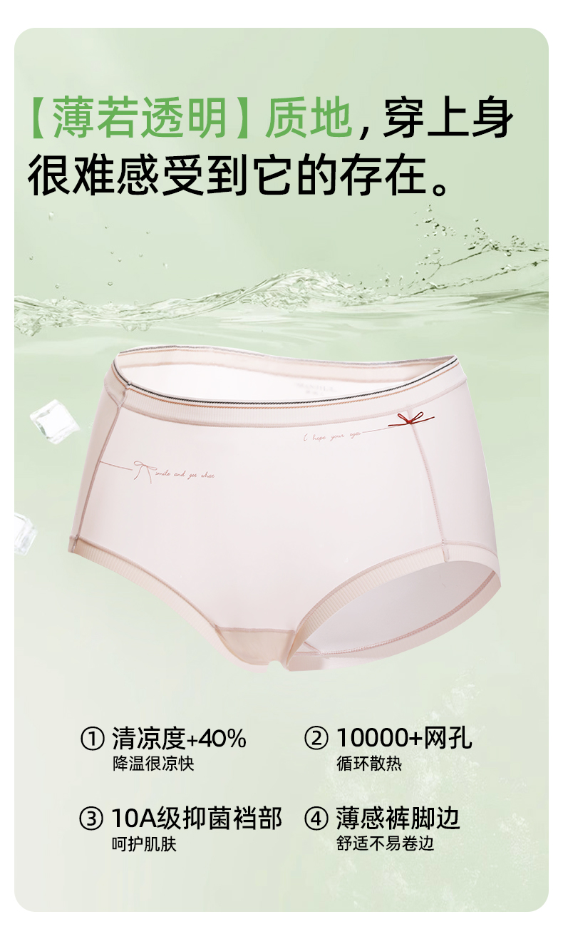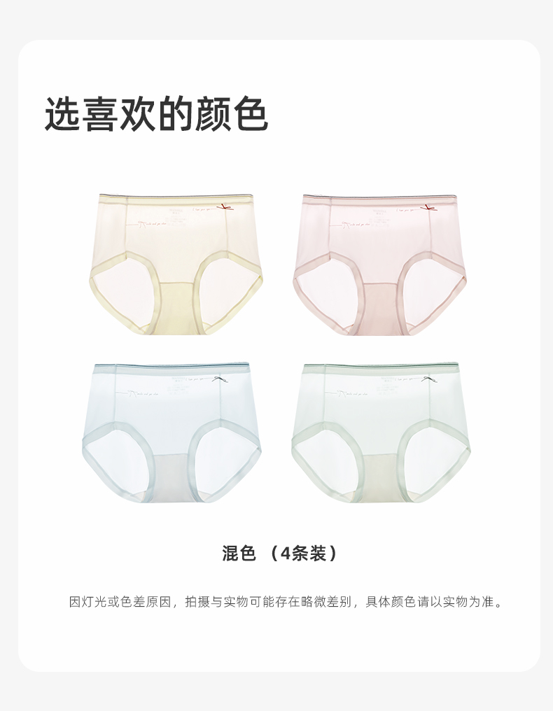 【4条装】熳洁儿 10A抑菌女士冰丝无痕凉感内裤中腰莫代尔25262136