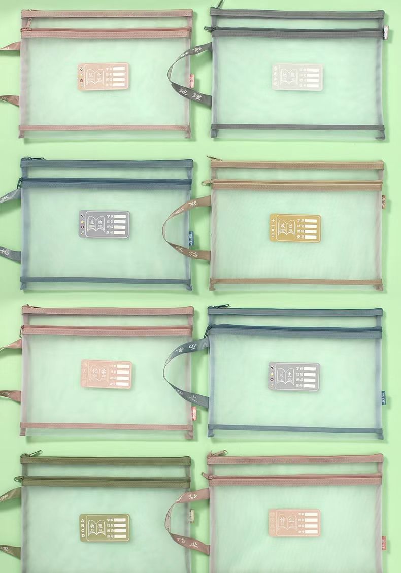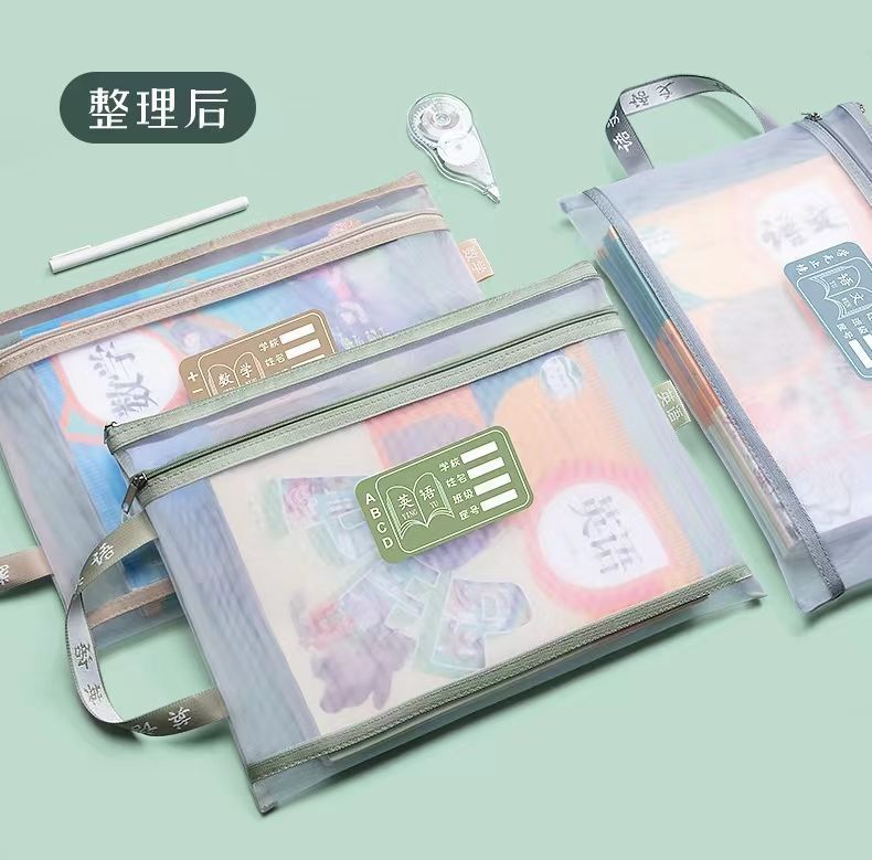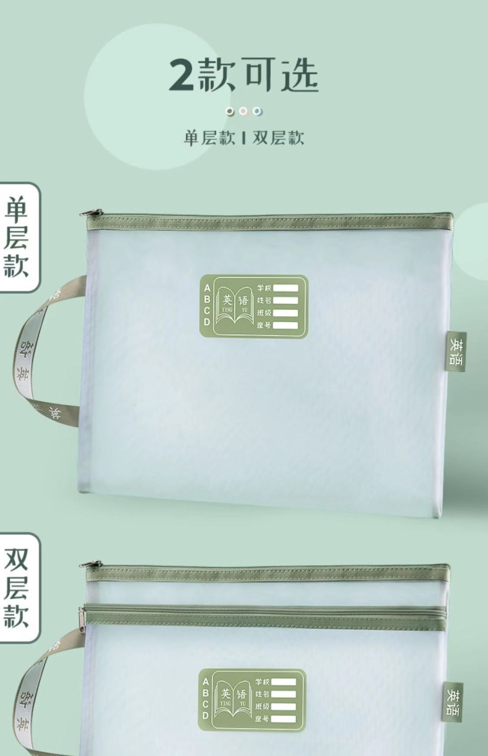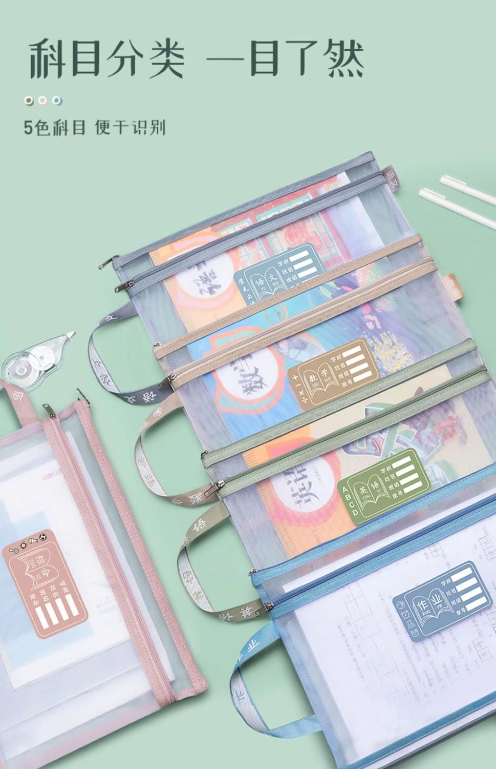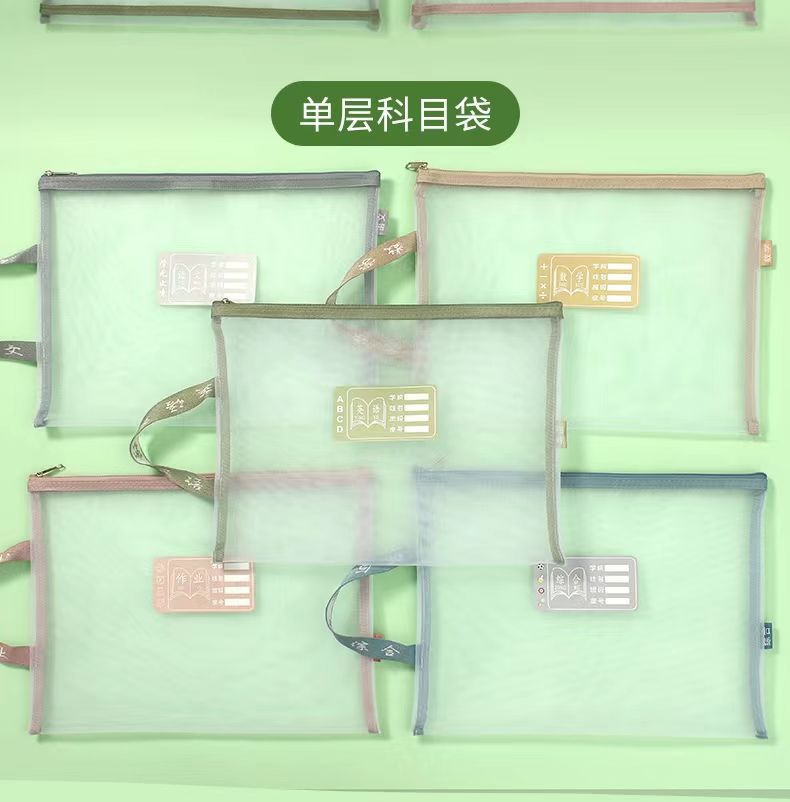 开学季福利!【5个装莫兰迪色科目袋】分类文件袋单层双层学科拉链大容量中小学生用作业袋透明网纱A4资料袋语文分科书袋试卷收纳袋学生装卷子的袋子