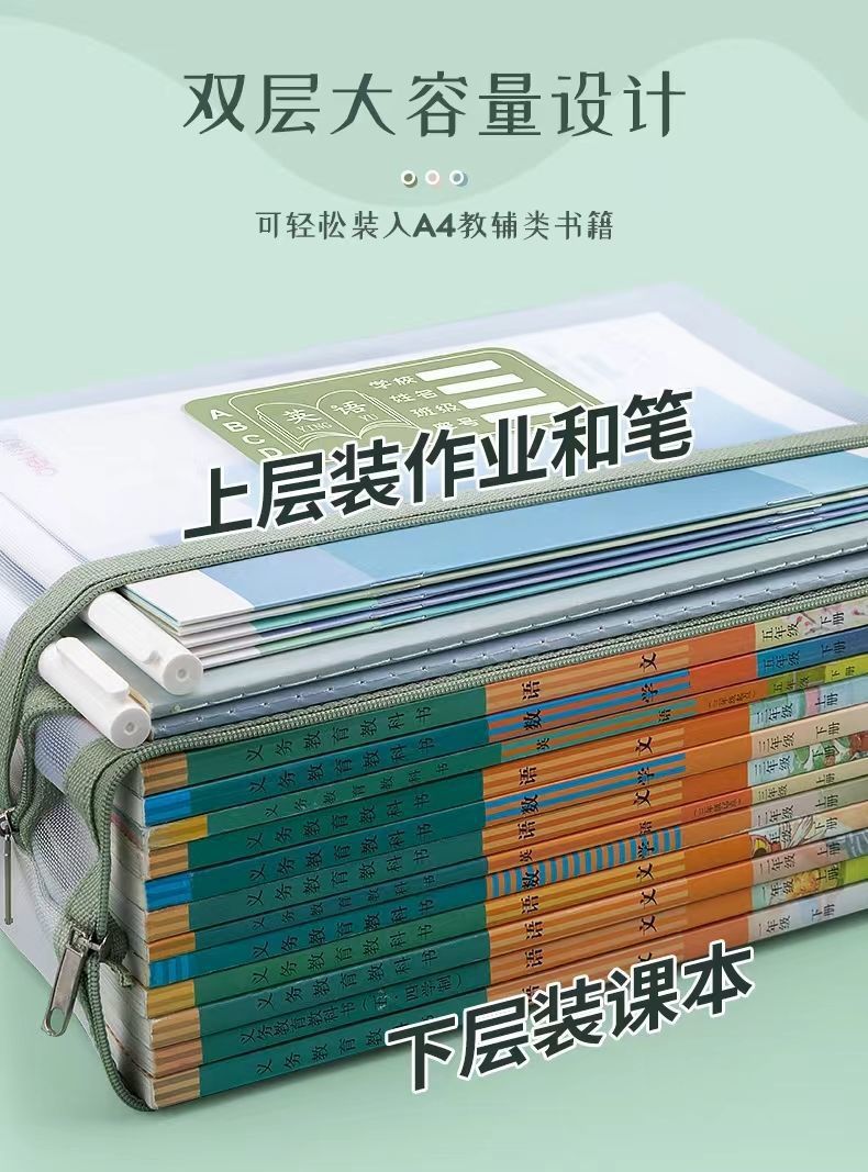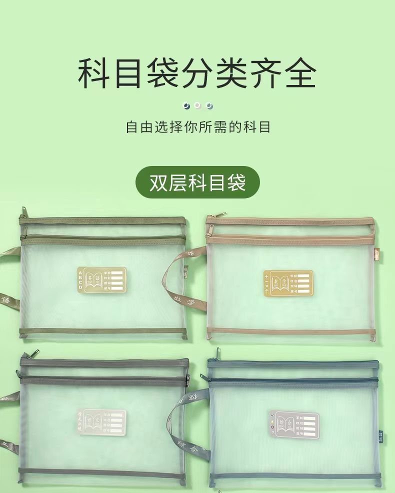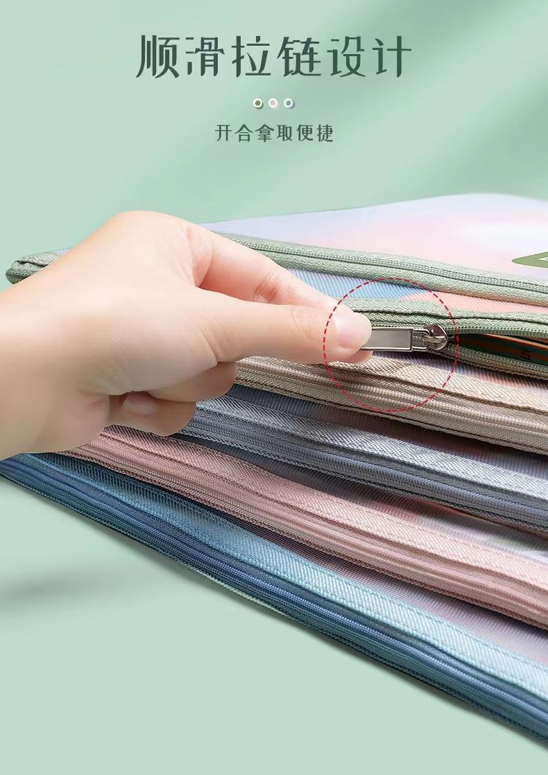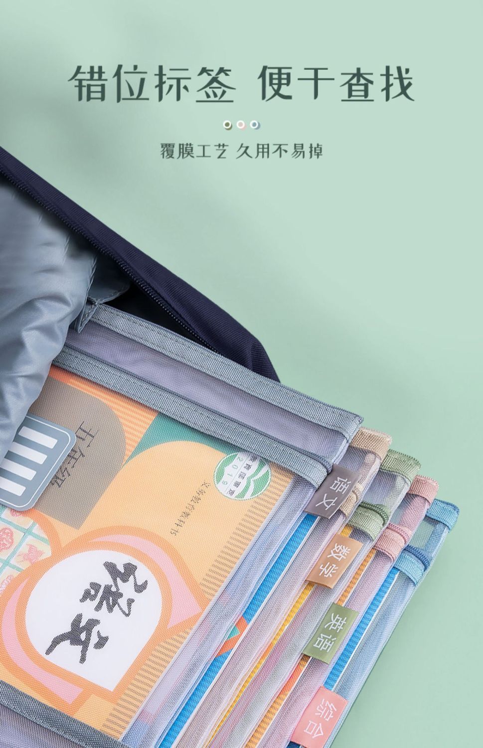 开学季福利!【5个装莫兰迪色科目袋】分类文件袋单层双层学科拉链大容量中小学生用作业袋透明网纱A4资料袋语文分科书袋试卷收纳袋学生装卷子的袋子