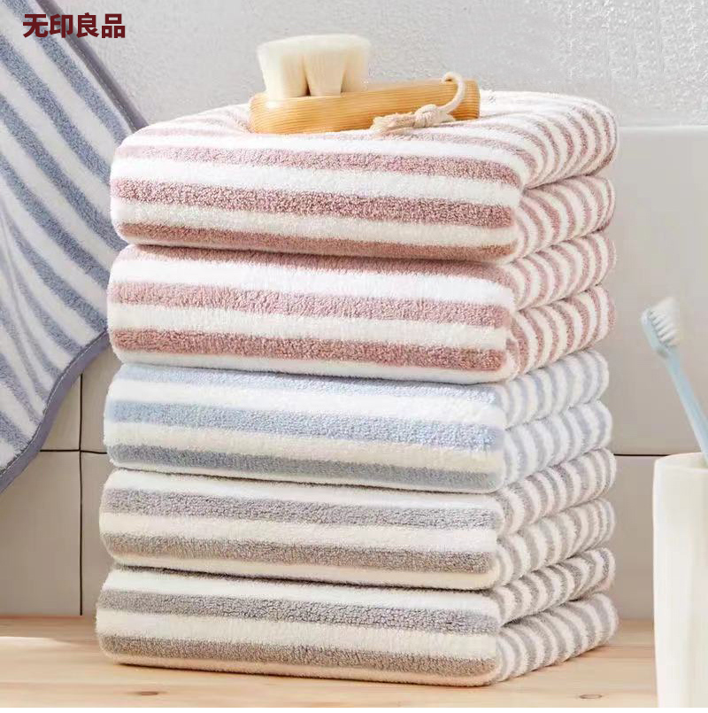 【2条毛巾+1条浴巾套装】无印良品经典挂式条纹毛巾/浴巾 柔韧耐用 不发黄 温和吸水 活性印染不掉色