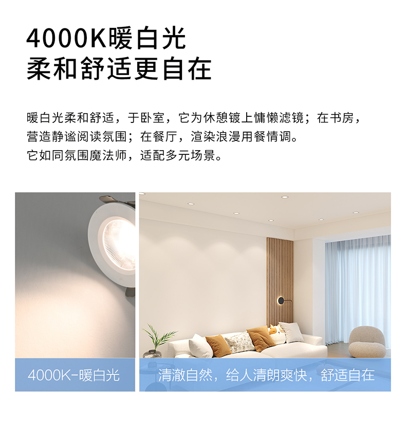 欧普(OPPLE)筒灯嵌入式天花灯客厅家用卧室防眩光射灯led全光谱智慧光佳II