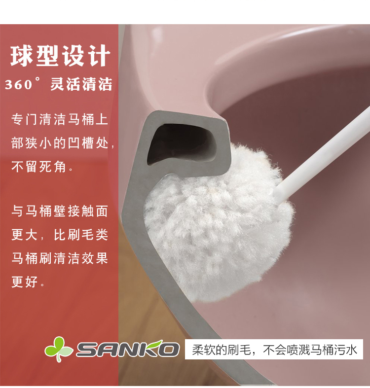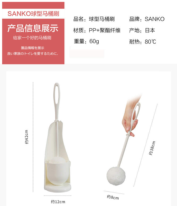 SANKO长柄马桶刷带底座无死角去污卫生间清洁坐便器日本厕所刷 WHJC