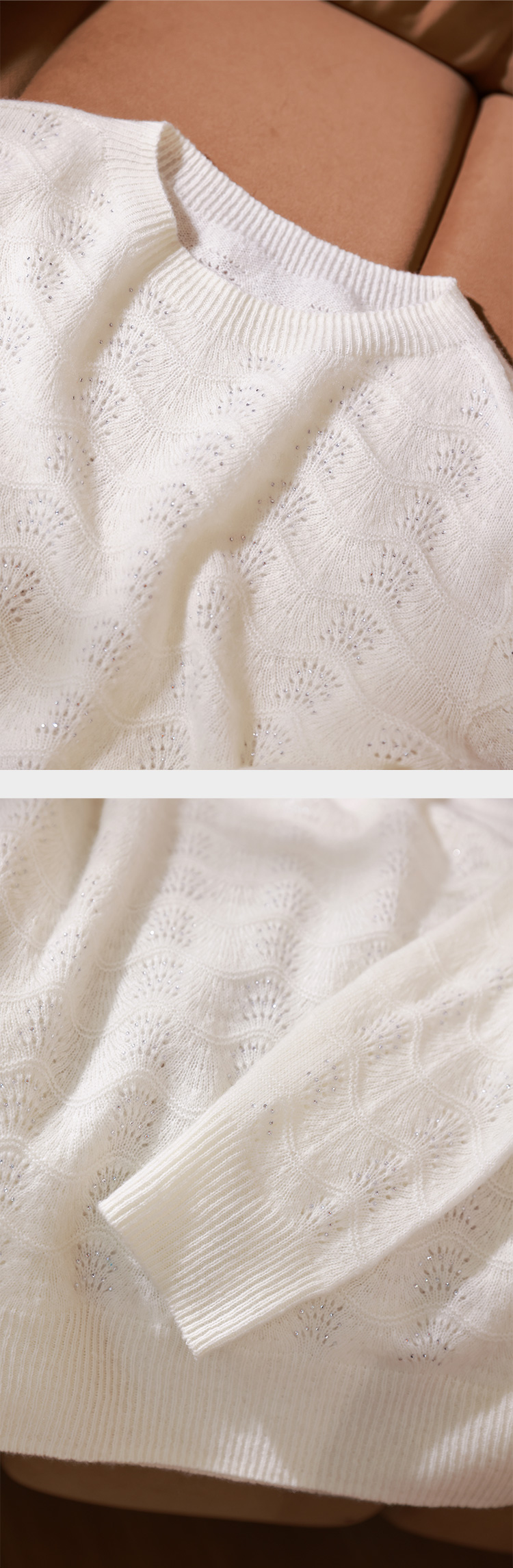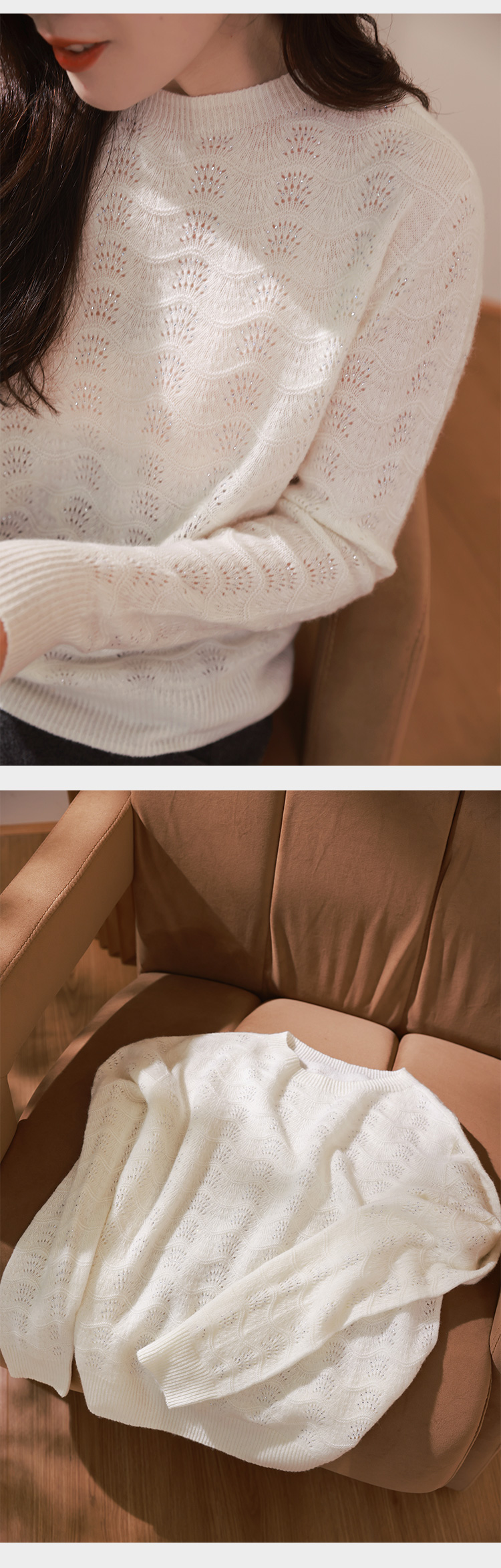 【回馈粉丝】68%羊毛32%羊绒 亮钻波浪花纹套头毛衫