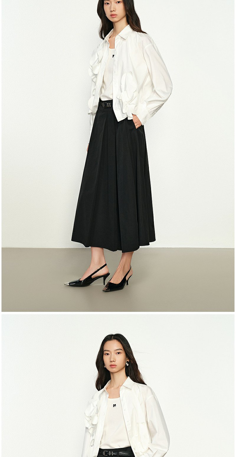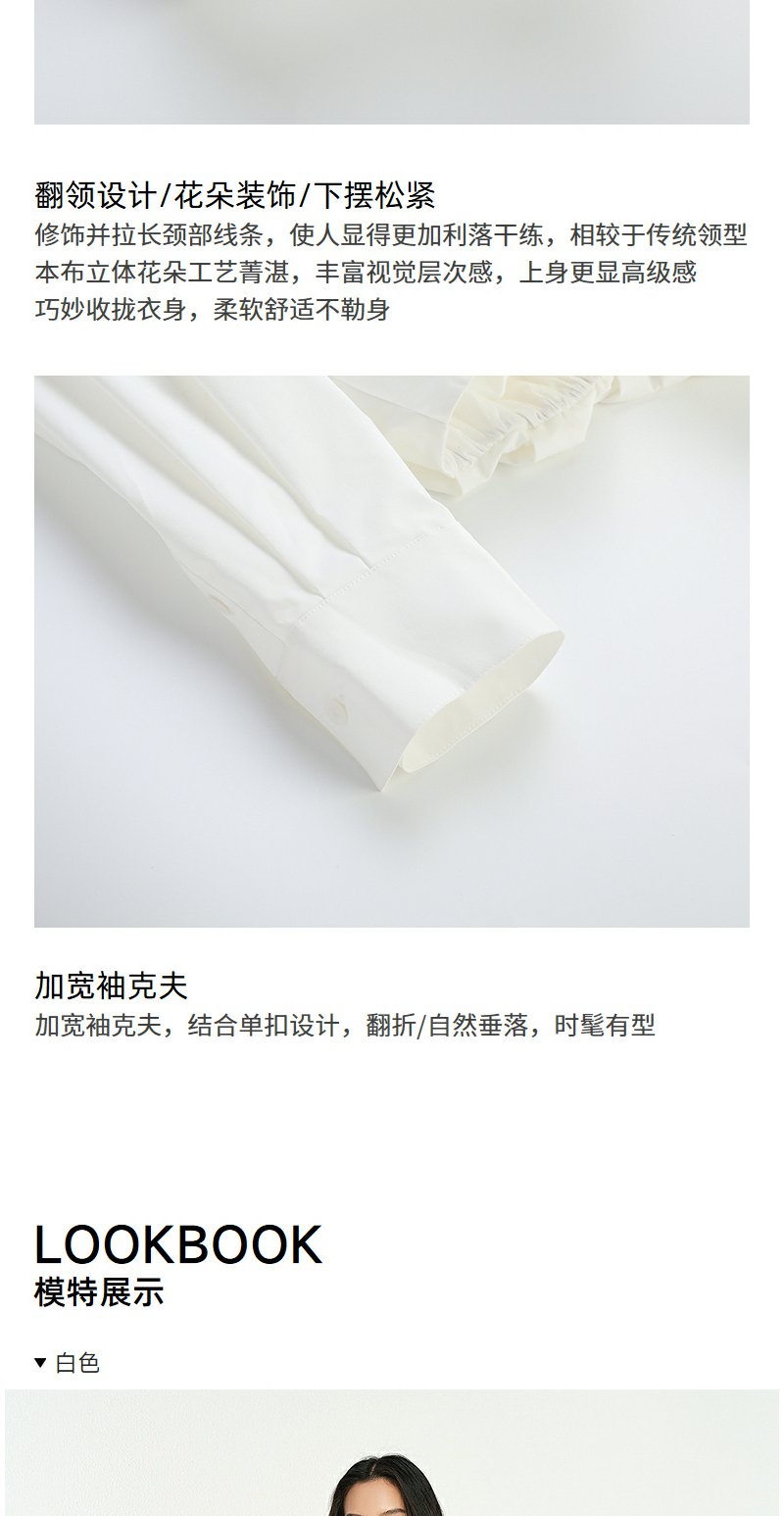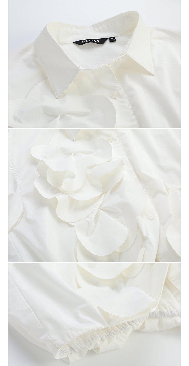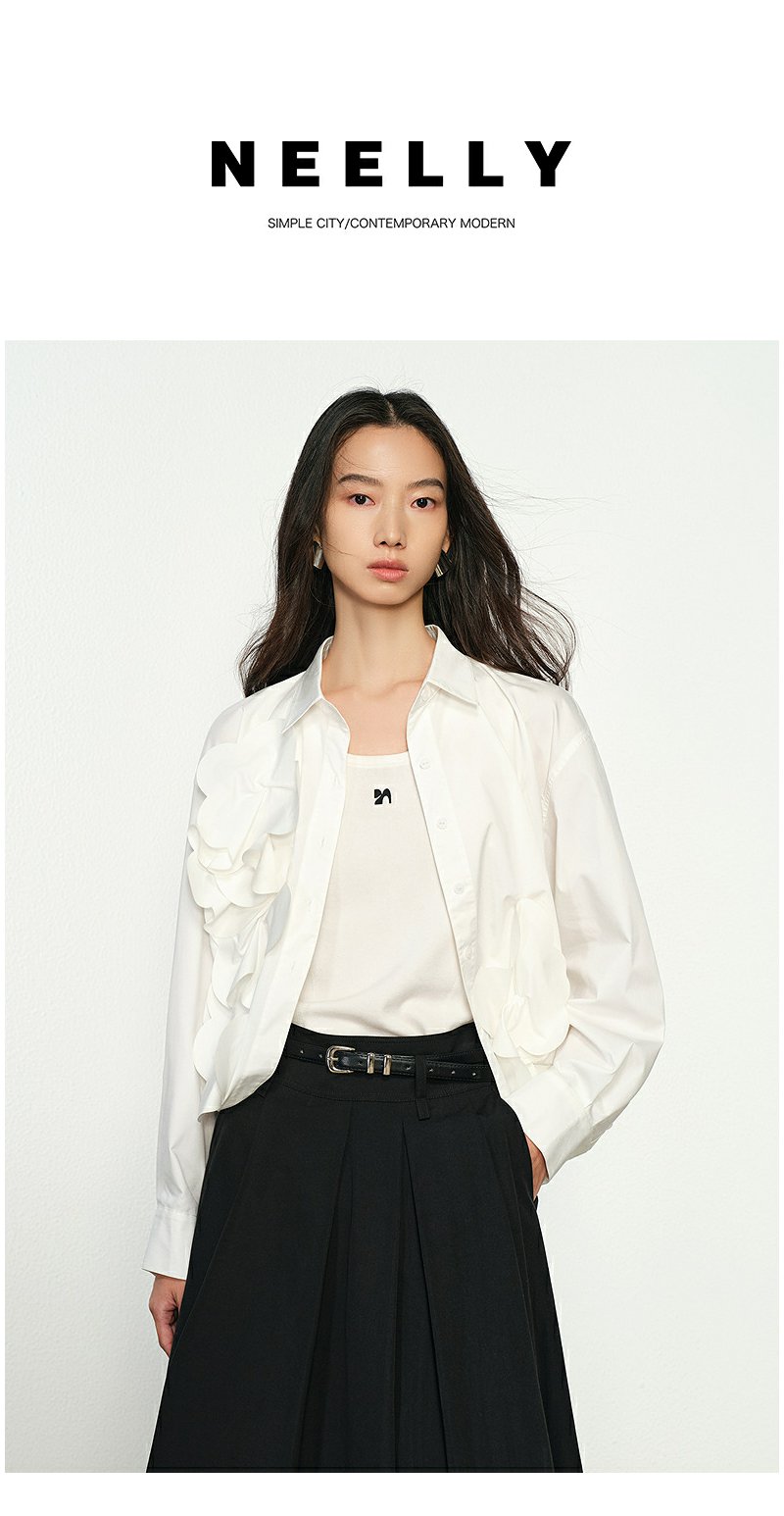 NEELLY纳俪商场同款春季新款立体装饰花朵长袖衬衫女纯色衬衣通勤N25074B04571