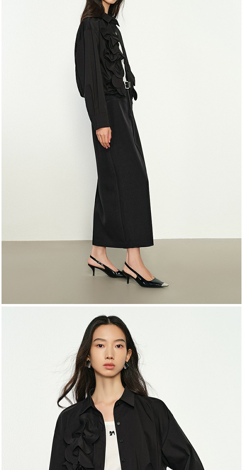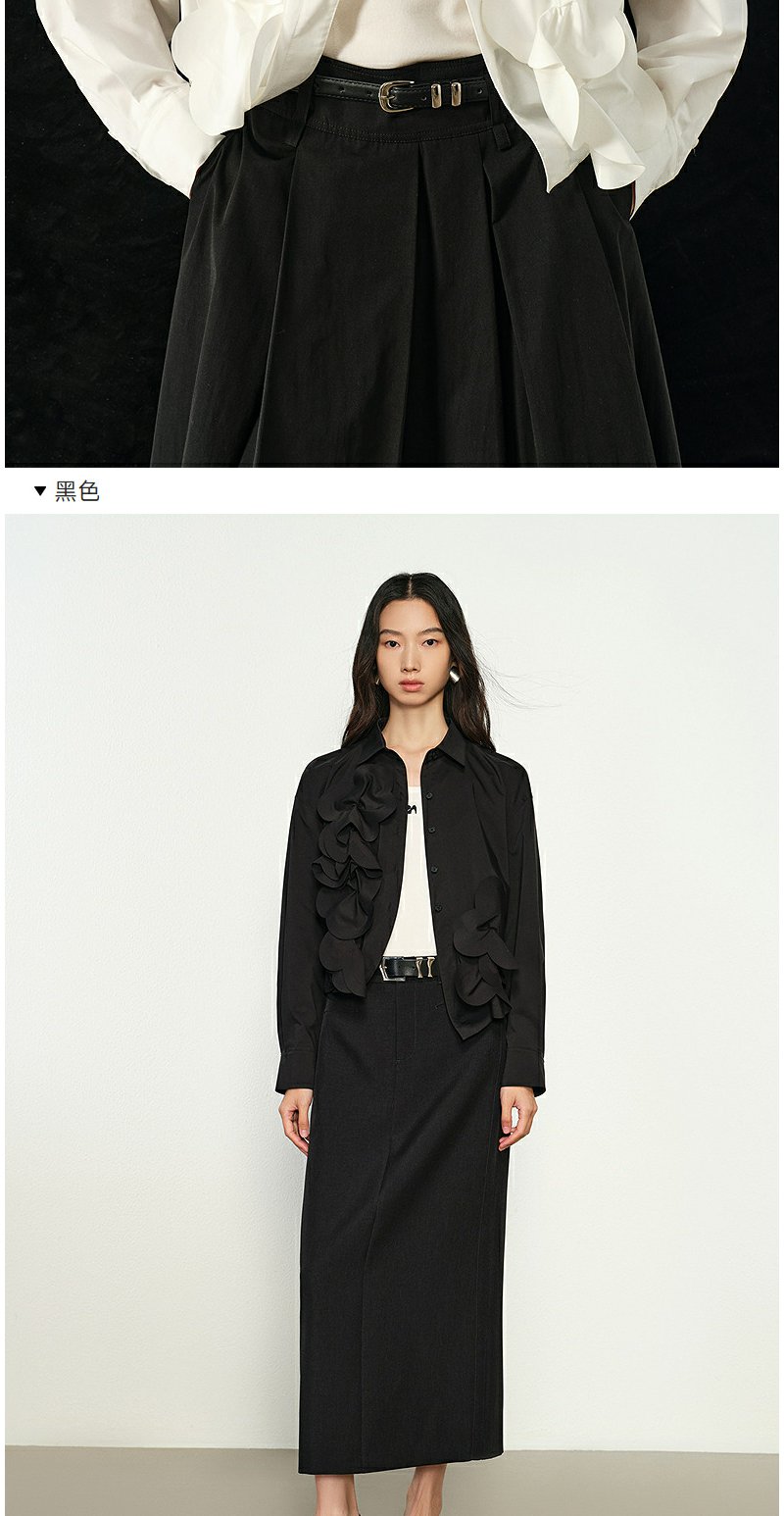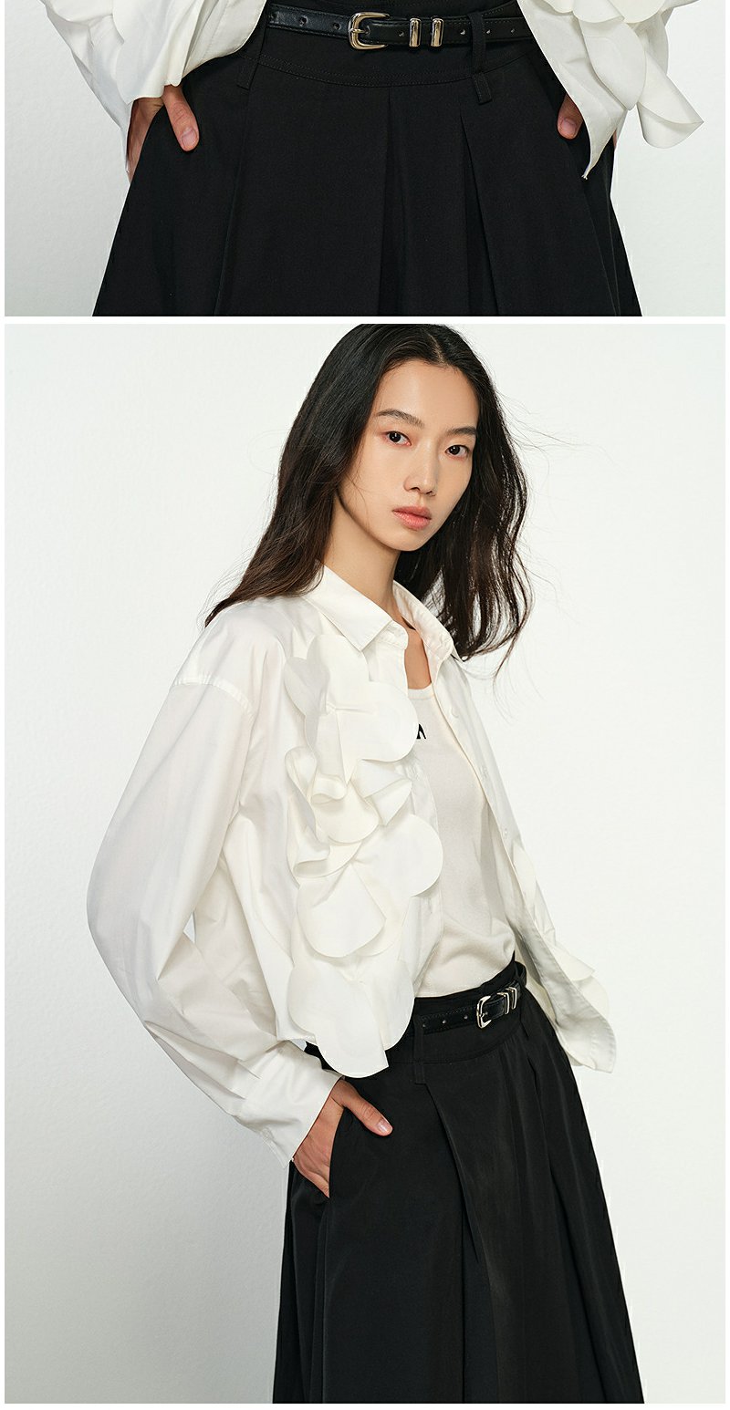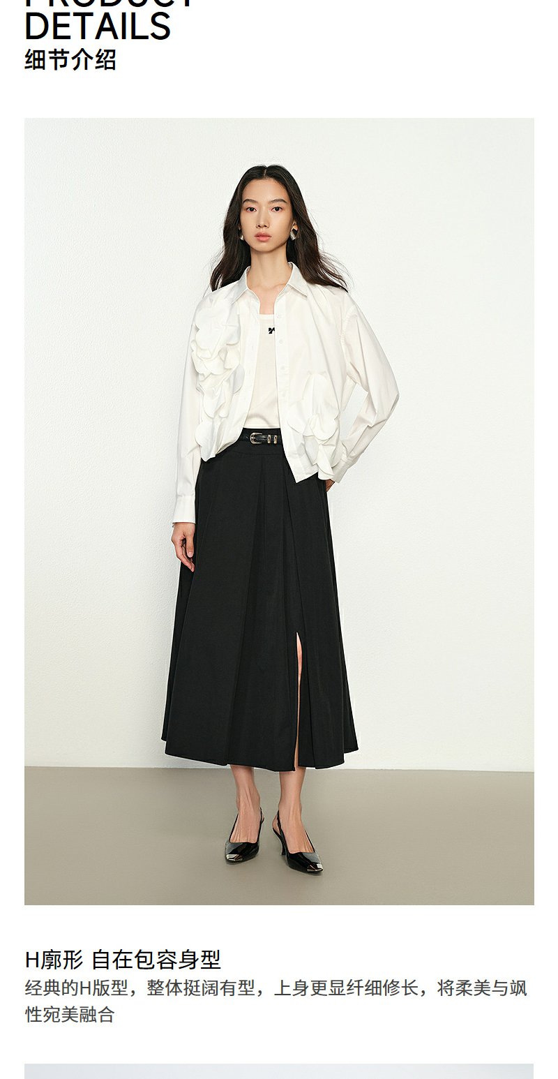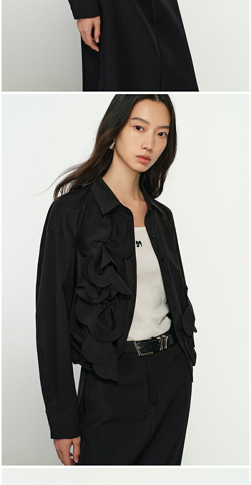 NEELLY纳俪商场同款春季新款立体装饰花朵长袖衬衫女纯色衬衣通勤N25074B04571