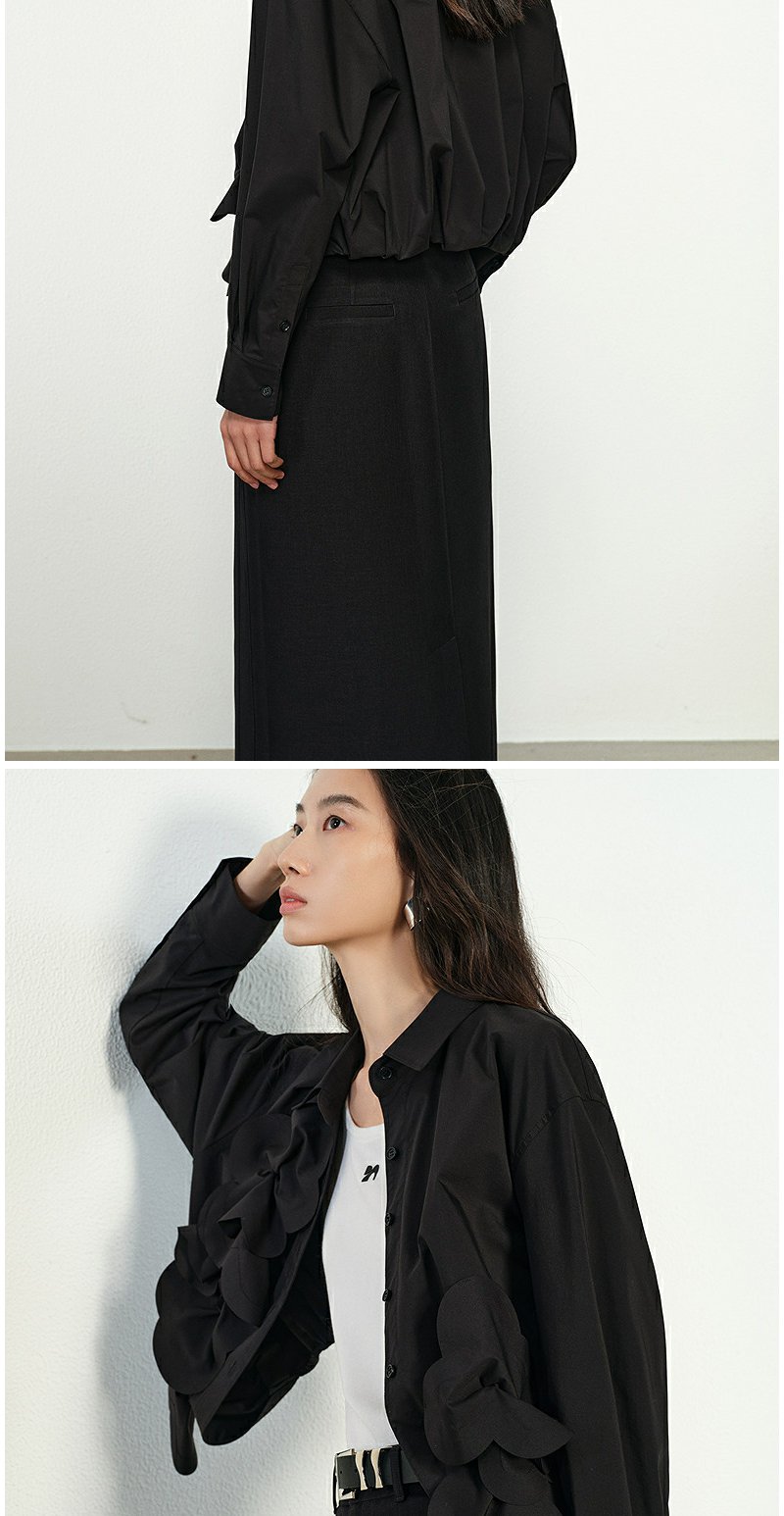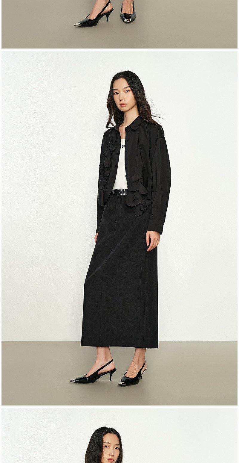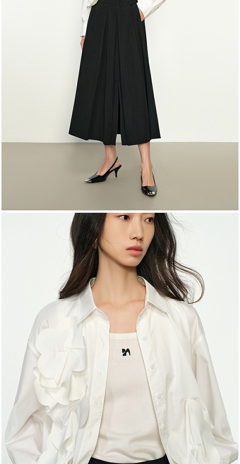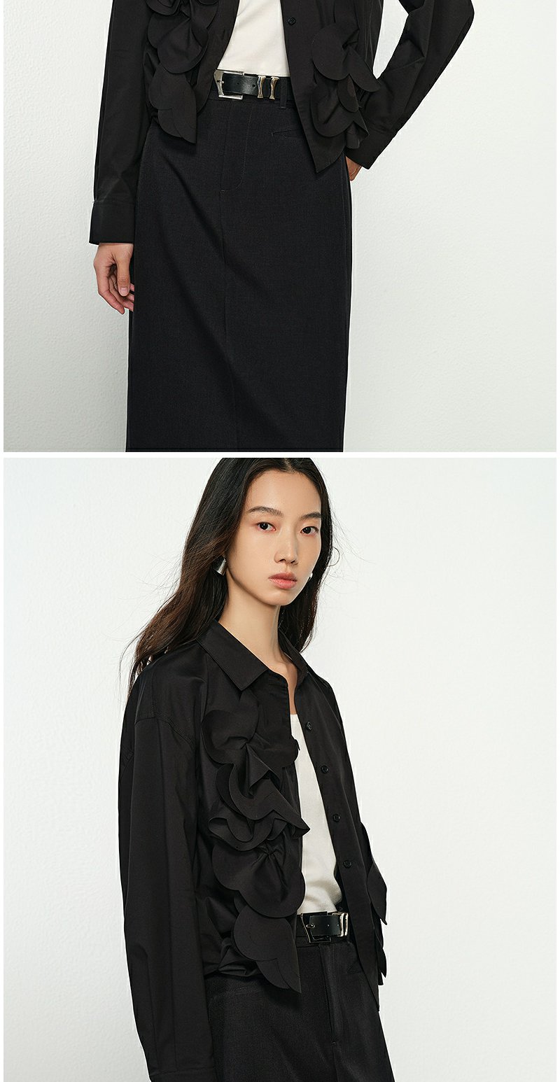NEELLY纳俪商场同款春季新款立体装饰花朵长袖衬衫女纯色衬衣通勤N25074B04571