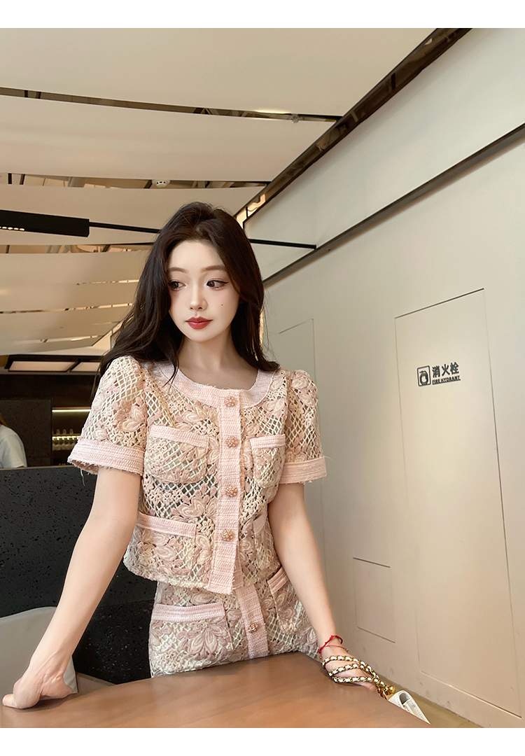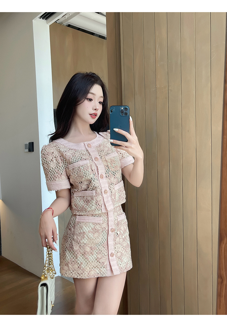 微信特批秒杀款 LINCHAOZHANG 【香槟玫瑰】LW240321 盘花扎染外套LQ240363 半裙时尚套装