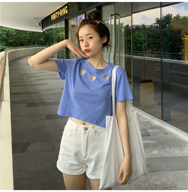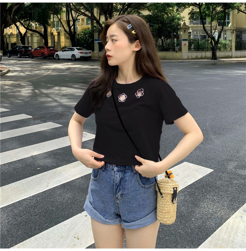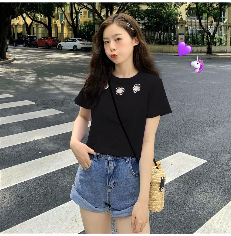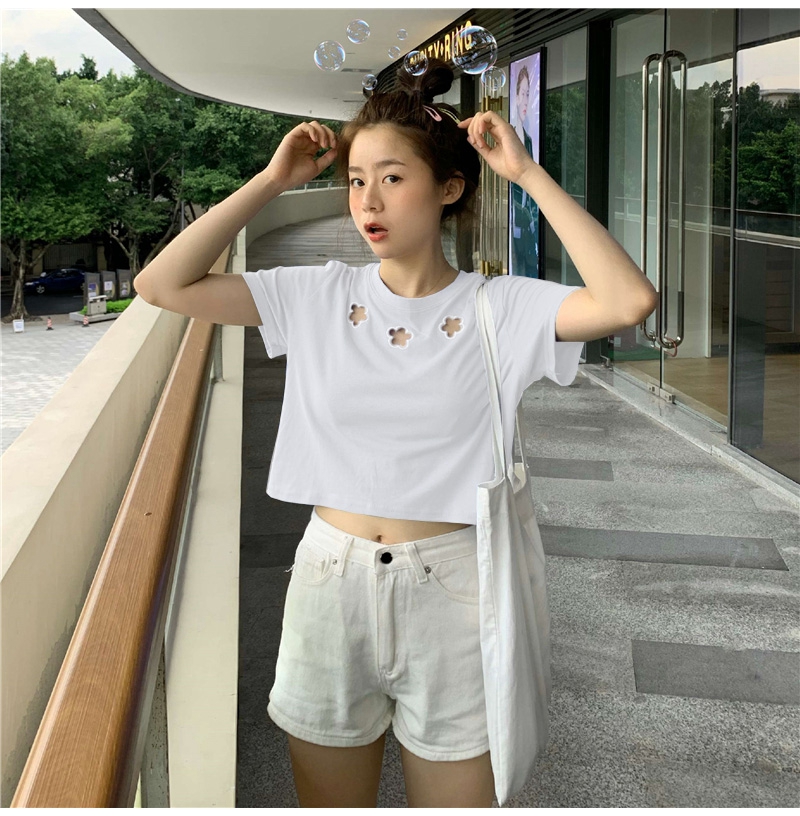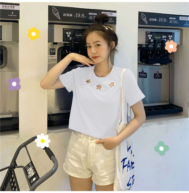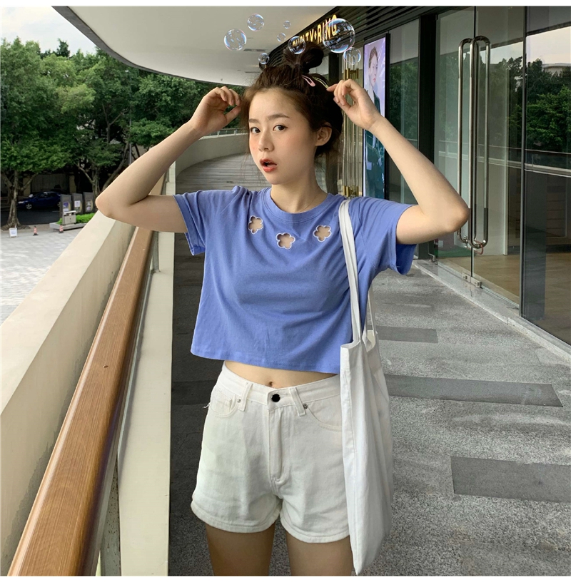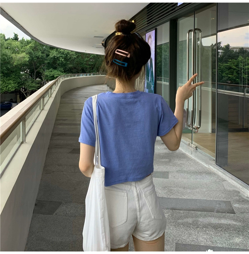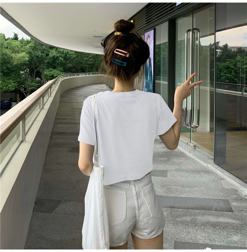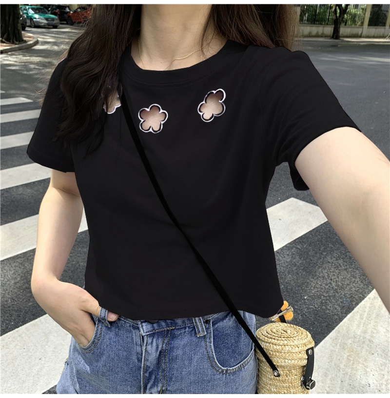 牛奶丝心机T恤女小众设计感短袖新款半袖短款服饰女装上衣出游七夕情人节
