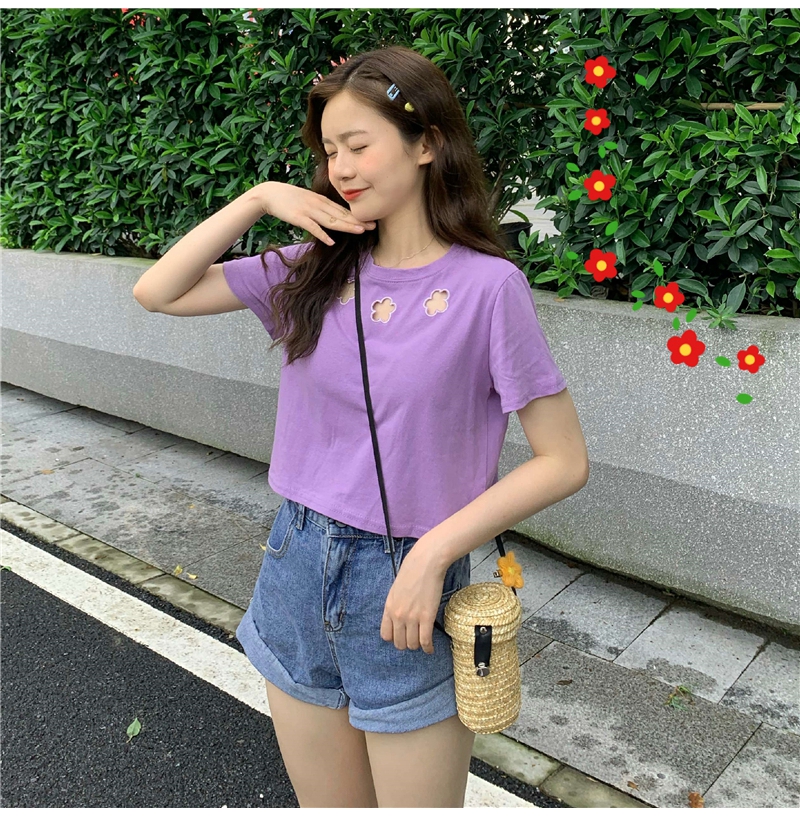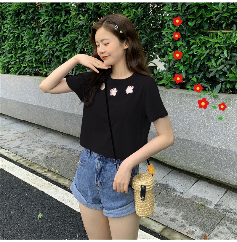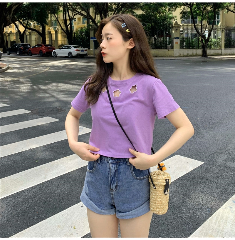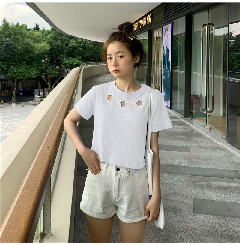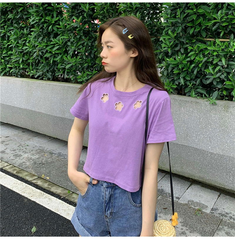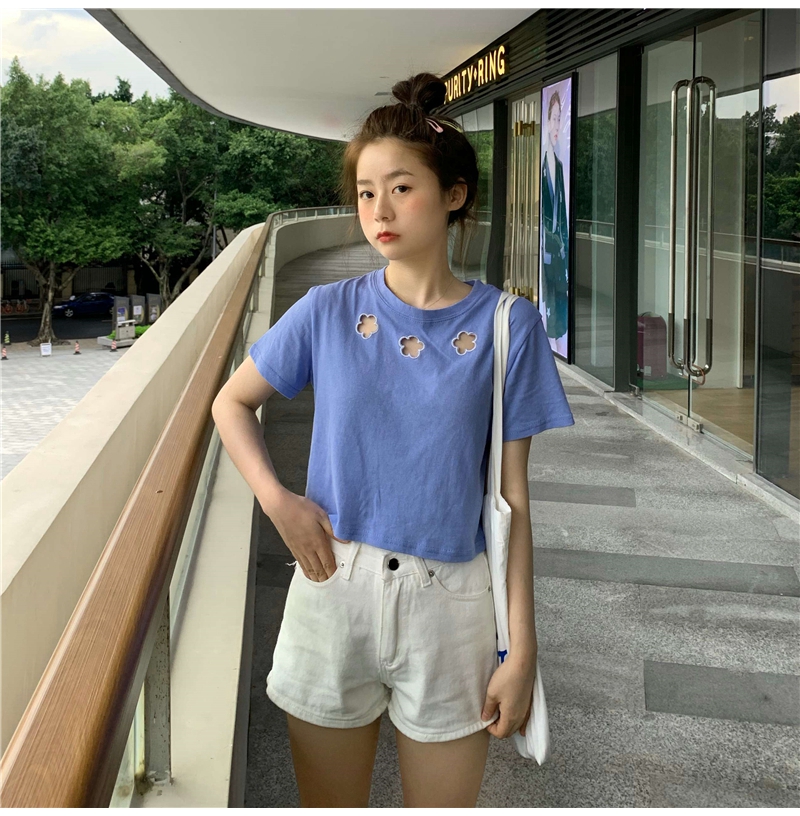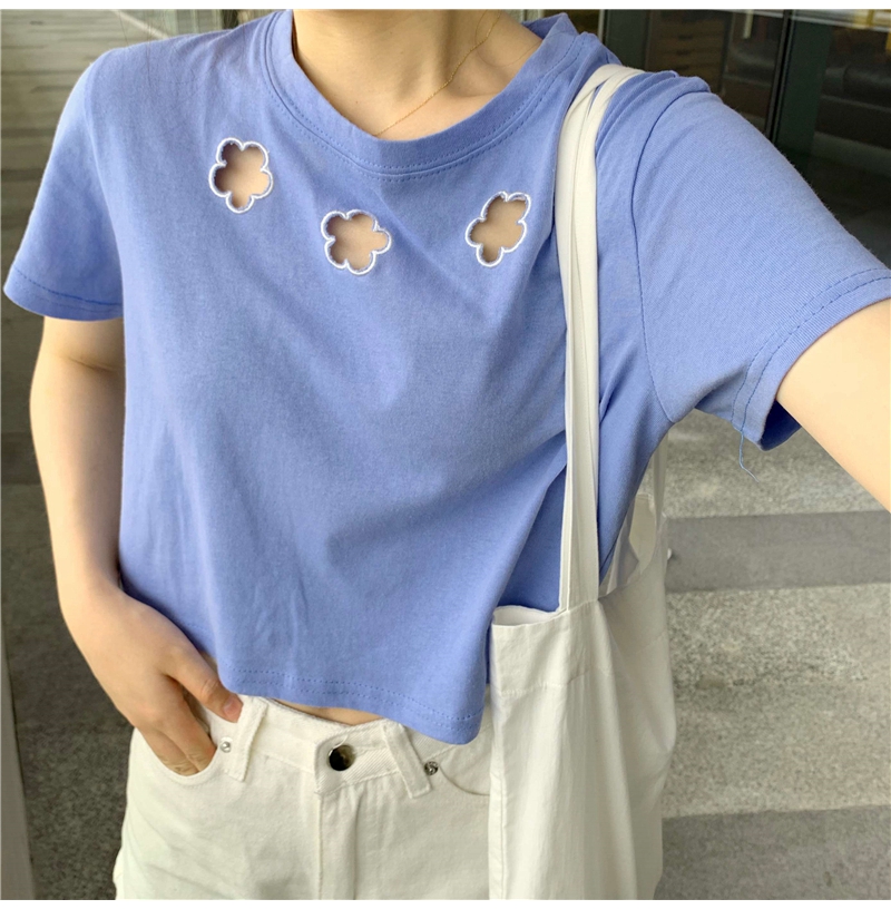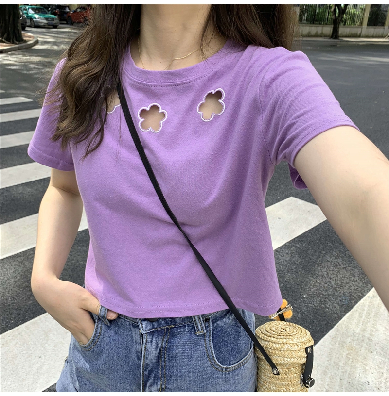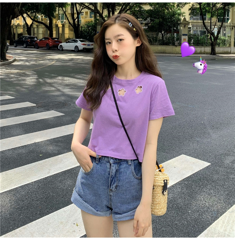 牛奶丝心机T恤女小众设计感短袖新款半袖短款服饰女装上衣出游七夕情人节