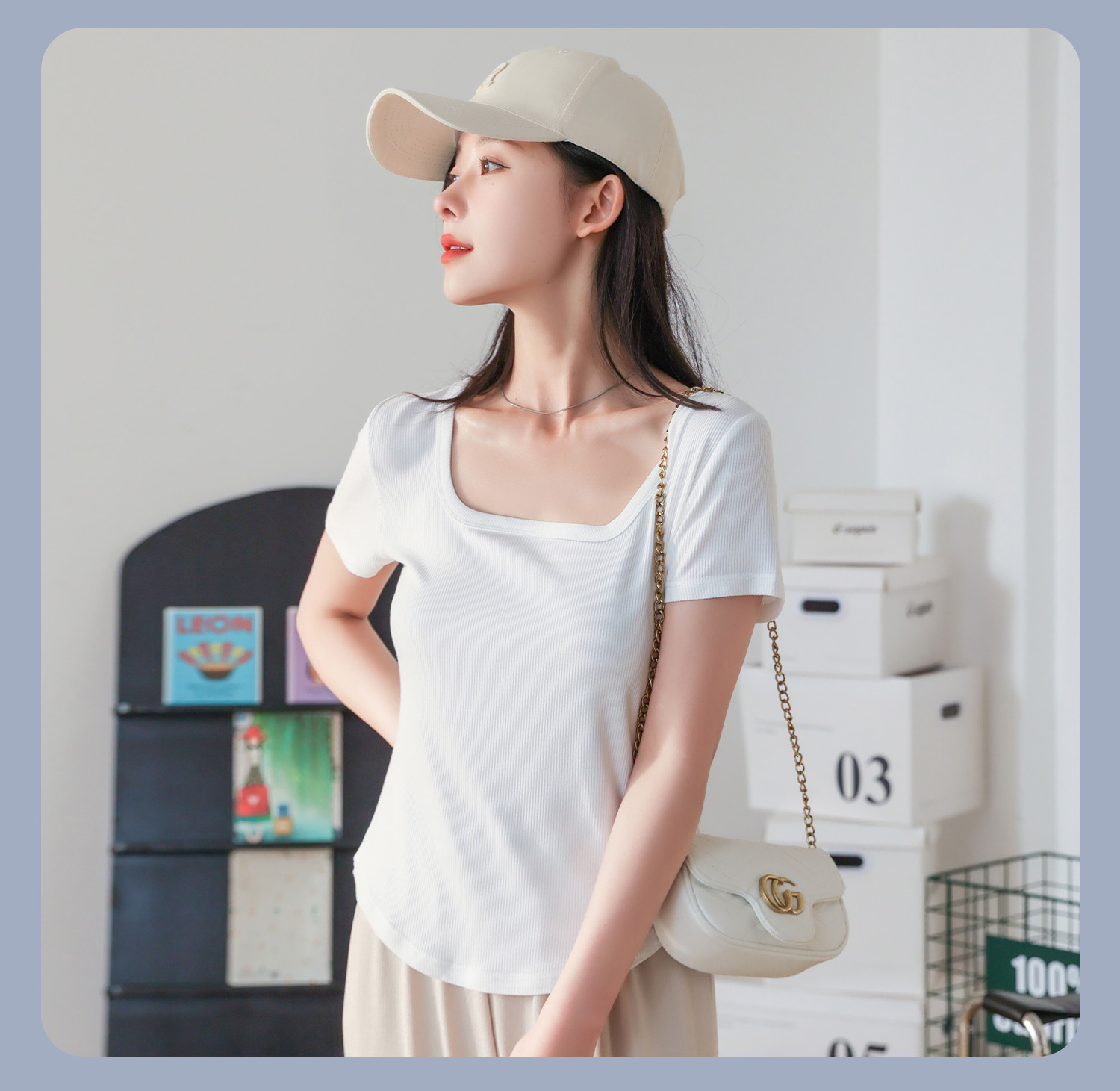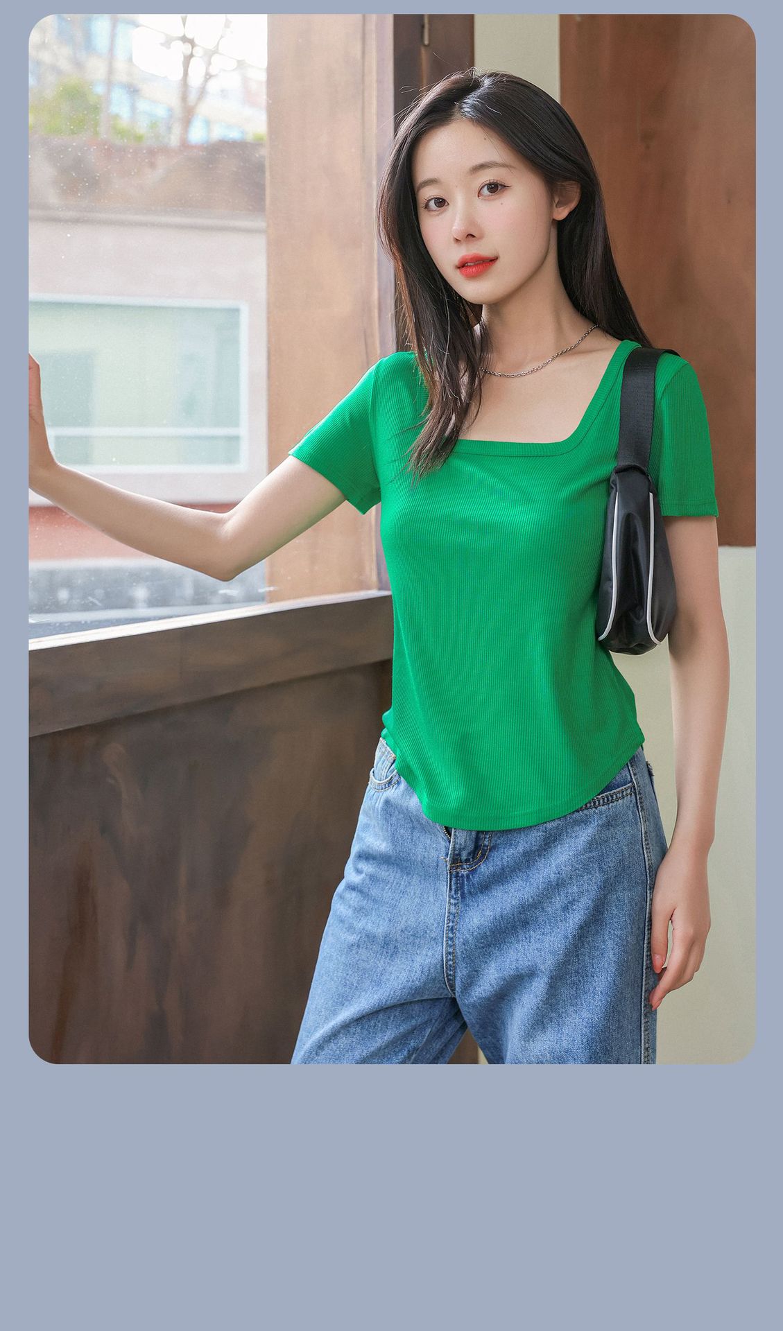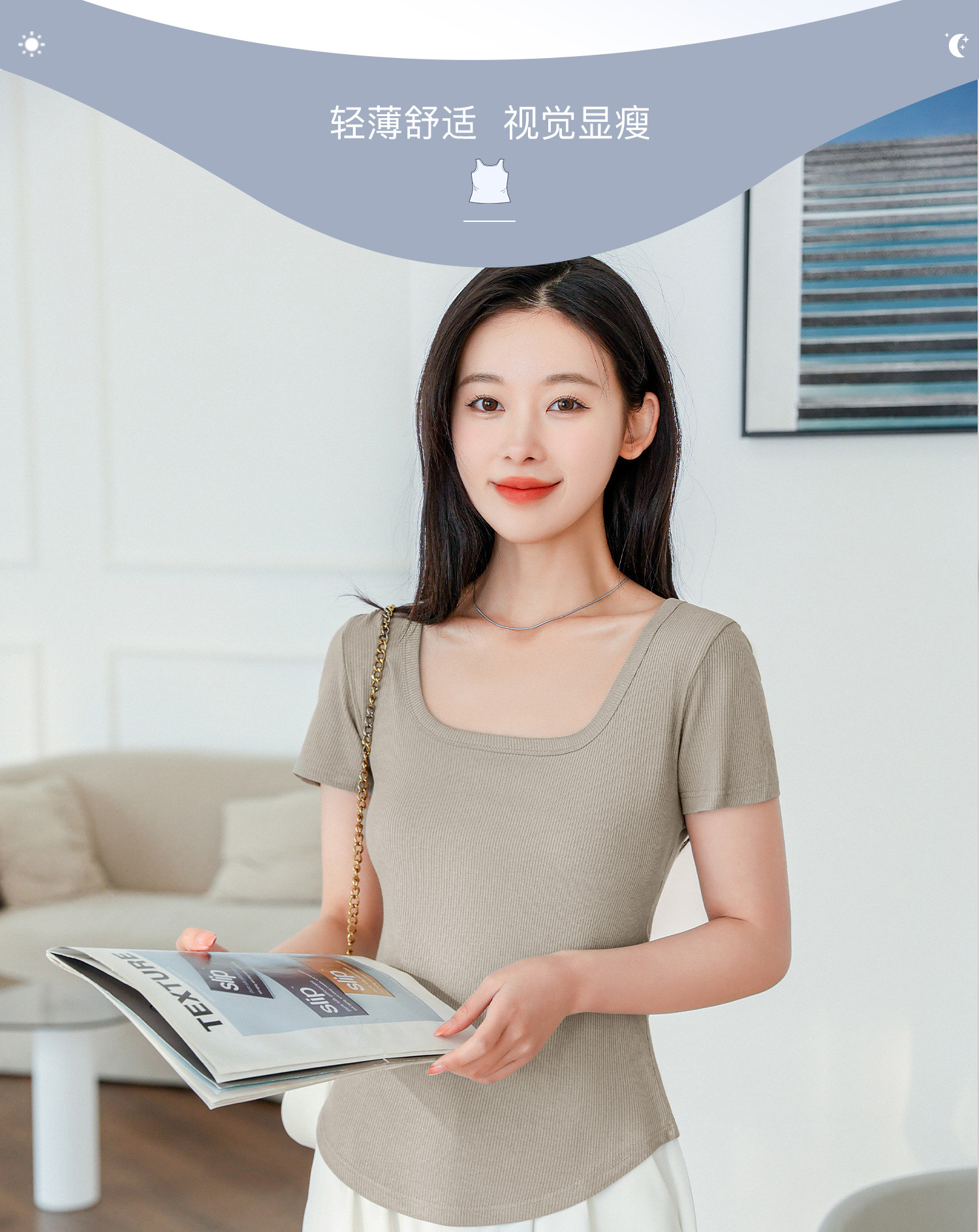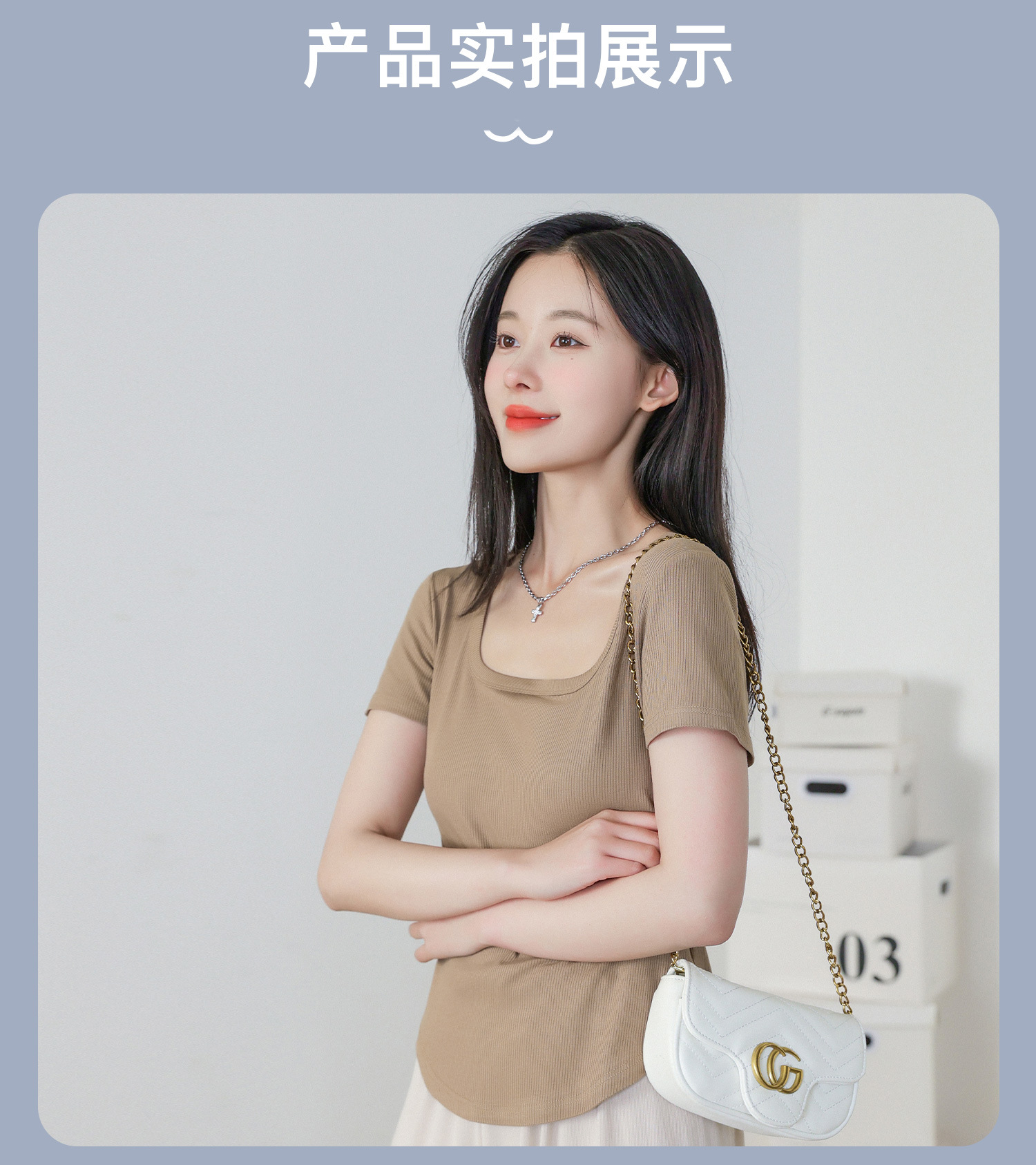【简约优雅,舒适到忘了它的存在】2023夏季新款螺纹短袖t恤女ins小众设计修身显瘦U领上衣