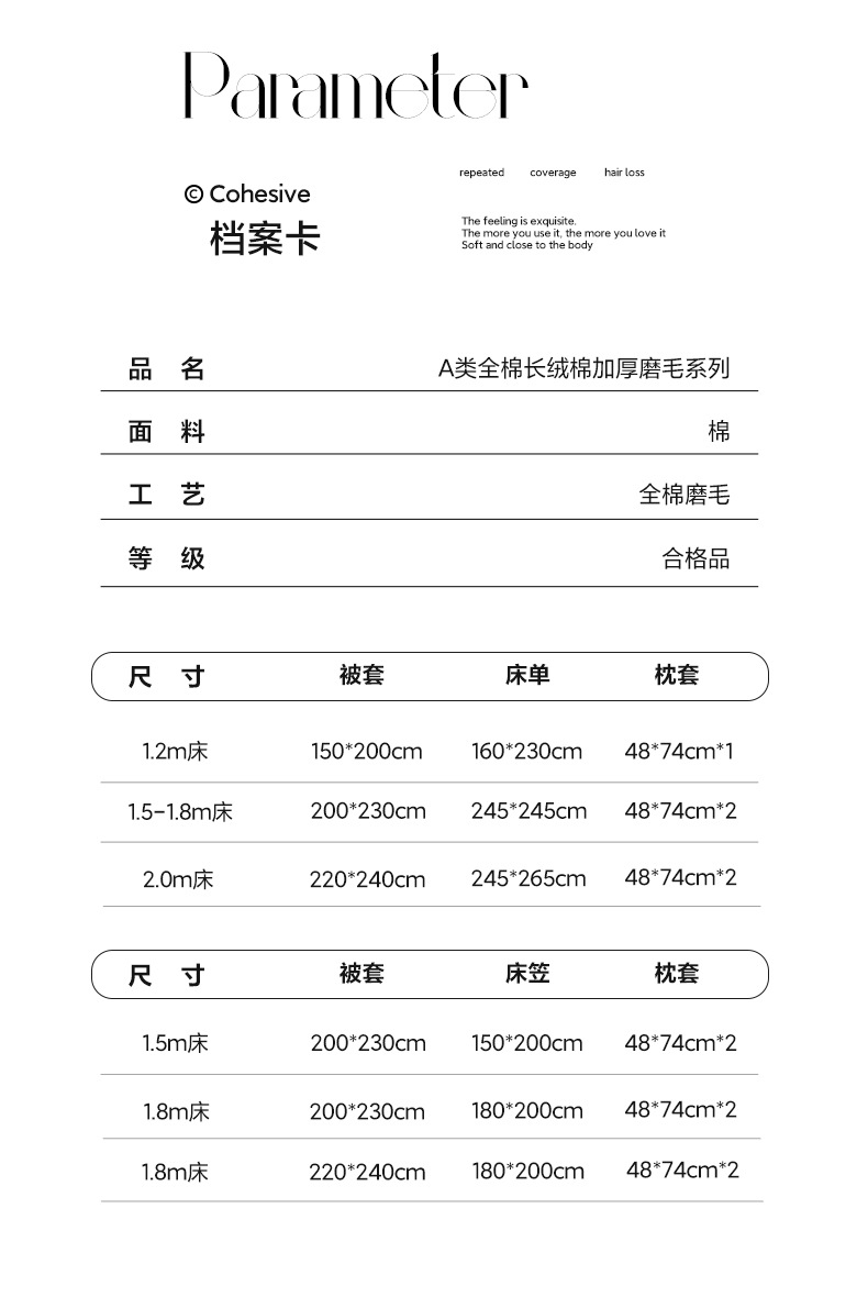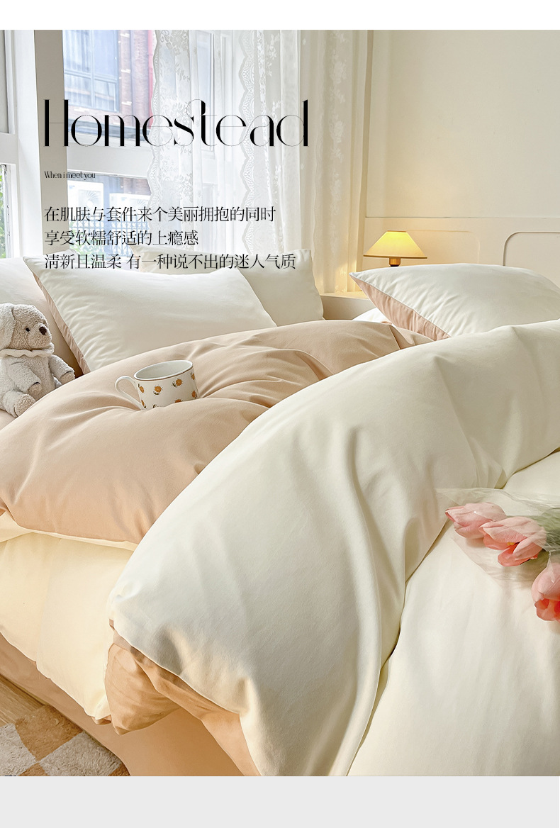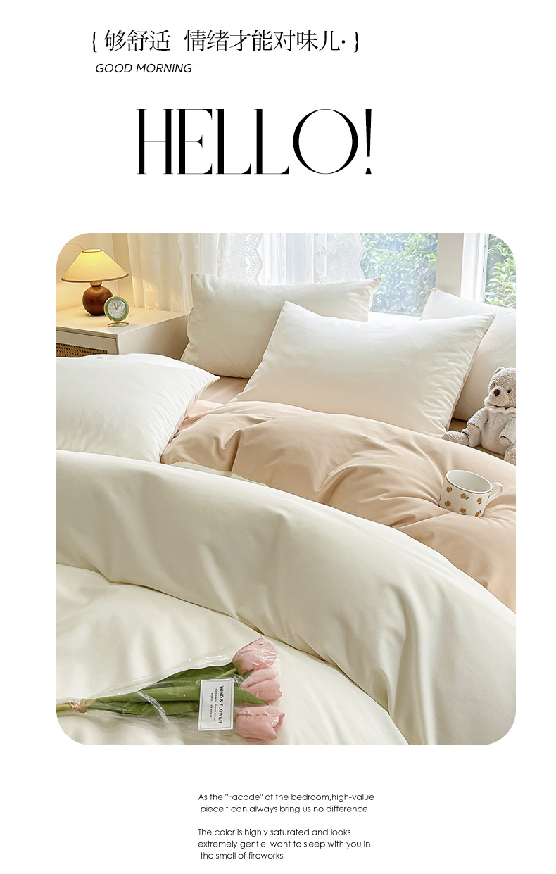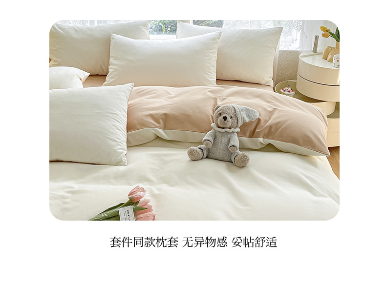【A类加厚长绒棉磨毛四件套】秋冬季 全棉纯棉被套床单三件套 简洁纯色家纺