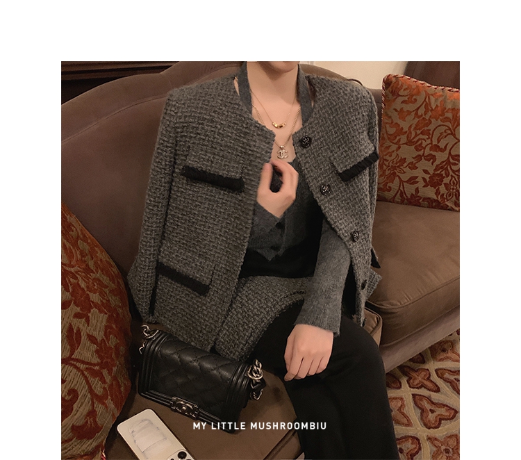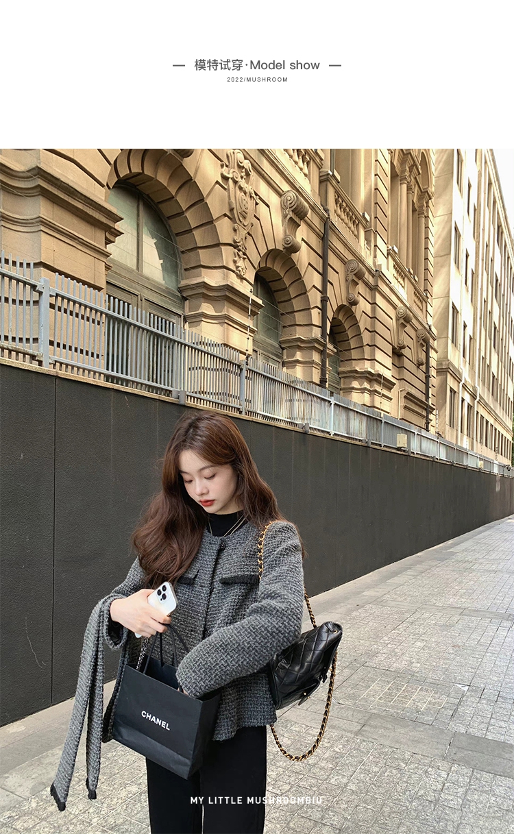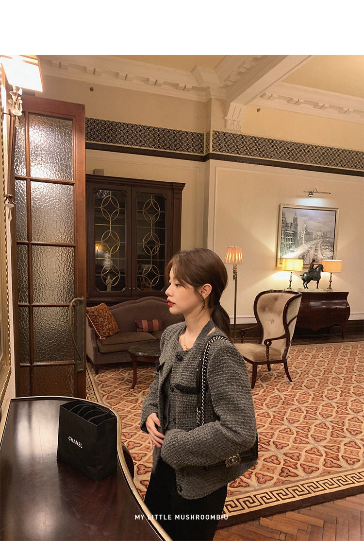 金蘑菇菇 奥地利书店 / 莱卡牛仔+时髦高阶灰香香 日常小精致外套