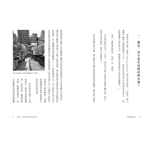 「東京於我,根本已然是一大本百科全書了。我永遠不能窺它的全豹,只能不時的翻閱一下、瀏覽一下,就心曠神怡了。」—舒國治